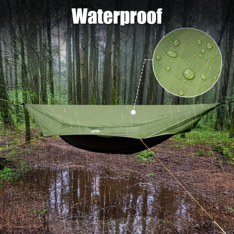 Naylon - Hamak ve Yer Çadırı ve Salıncak 3'ü 1 Arada Bu Kamp Hamak çadırı, kamp, sırt çantasıyla gezme, yürüyüş, açık hava gezisi veya sadece asılı olarak farklı taleplerinizi karşılayan bir hamak, bir yer çadırı veya hatta bir salıncak olarak kullanılmak üzere çok işlevlidir. arka bahçede rahatlatıcı. Yağmur sineği ile kullanıldığında, hamak güzel hava akışı ile şiddetli yağmur su geçirmez bir çadır haline gelir - Sivrisinek Ağı ile Güvenli ve 200 kg'a  Ağırlık için Güçlü Cibinlik ile tasarlanan can sıkıcı sivrisineklerden veya sineklerden uzak durmanızı sağlar.