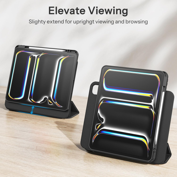 Çıkarılabilir manyetik kılıf, eller serbest görüntüleme, okuma veya yazma deneyimleri sağlar ve şeffaf arka kılıf, yemek pişirme veya oyun oynama sırasında ergonomik konfor için kolayca çıkarılabilir.