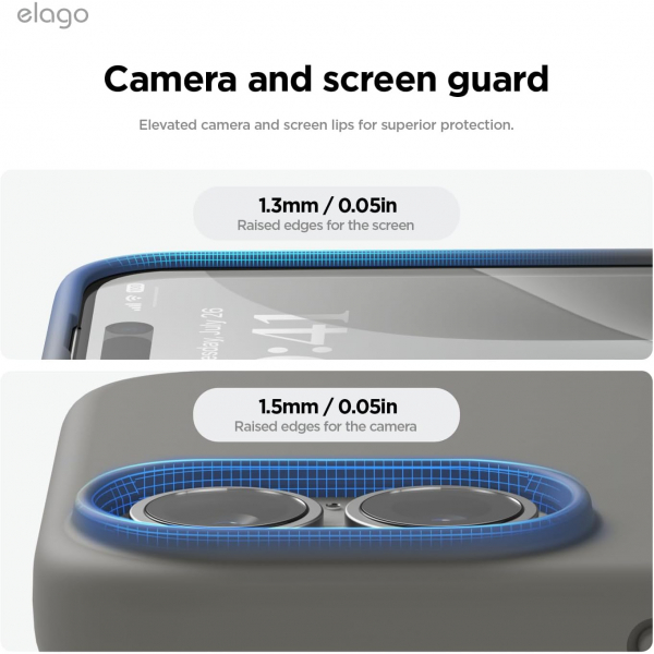 Yükseltilmiş dudak, ekranı ve kamerayı doğrudan yüzey temasından kaynaklanan çizilmelere karşı korumaya yardımcı olur.
