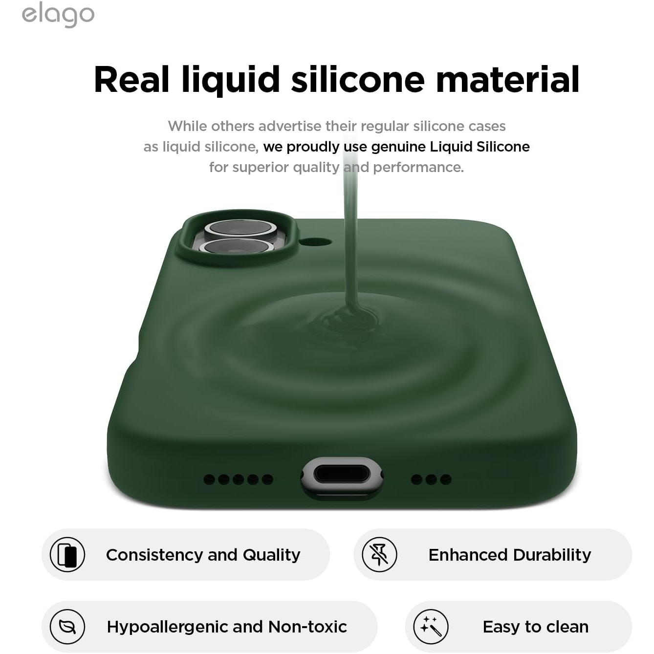 elago Apple iPhone 16 Silikon Kılıf ürünü iPhone 16 ile tam uyumludur.