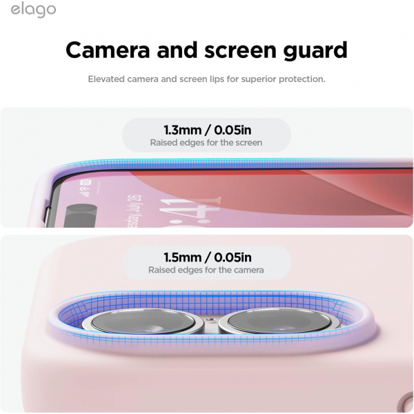 Yükseltilmiş dudak, ekranı ve kamerayı doğrudan yüzey temasından kaynaklanan çizilmelere karşı korumaya yardımcı olur.