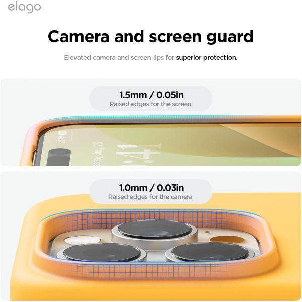 Yükseltilmiş dudak, ekranı ve kamerayı doğrudan yüzey temasından kaynaklanan çizilmelere karşı korumaya yardımcı olur.