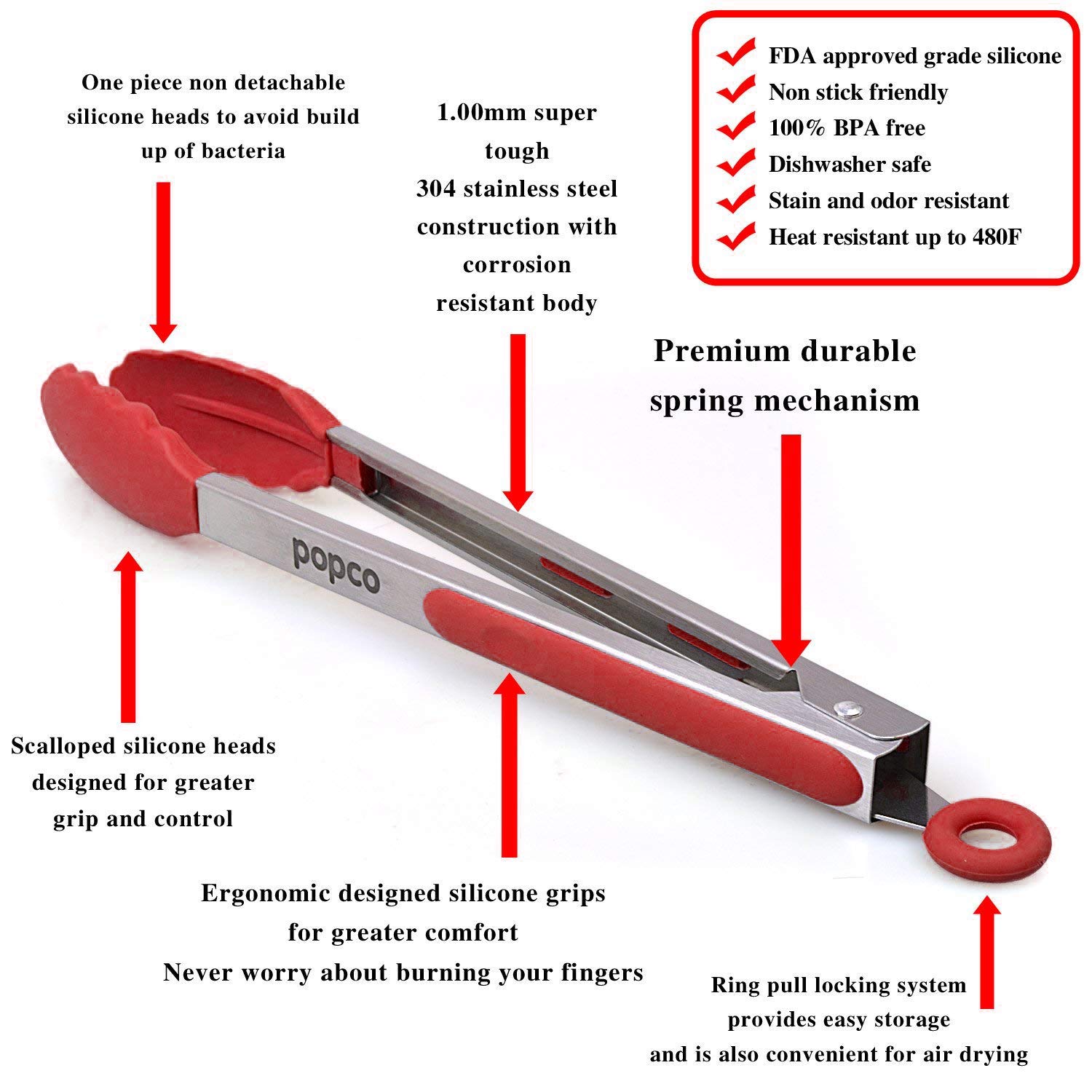 POPCO Kırmızı Silikon Mutfak Maşası (3 Adet)