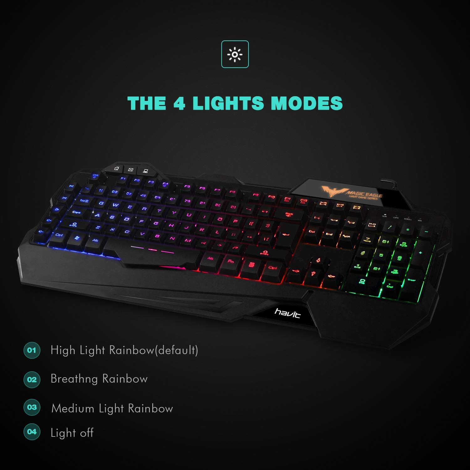 LED Arkadan Aydınlatmalı Gökkuşağı orta ışık, yüksek ışık, nefes modu arasında geçiş yapabilir ve aynı anda Fn ve Esc tuşlarına basarak kapanabilir. - Çatışma olmadan 19 tuşa kadar eşzamanlı kullanım, 8 multimedya kısayol tuşu, değiştirilebilir "WASD" tuşları ve WIN tuşları oyun oynamak için devre dışı bırakılabilir. - 7 Kriküler ve Renkli Solunum LED Işık EfektiKırmızı, Yeşil, Mavi, Yollow, Mor, Camgöbeği, Pembe (Sıcak ipuçları: belirli bir renkte ayarlanamaz); Işık kapalı modu: ileri / geri düğmesi + 3 saniye boyunca DPI - 3200 DPI'ye kadar çözünürlük, Dört seviye ayarlanabilir, 800/1200/2400/3200 DPI, DPI düğmesi yanıp sönen göstergeli. - Windows 2000/2003 / XP / Vista / Win7 / Win8 / Win10 / Mac OS ile uyumludur