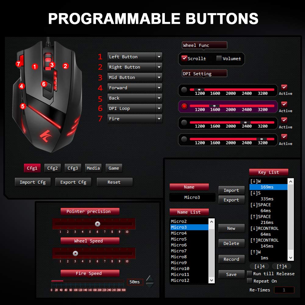 PROGRAMLANABİLİR OYUN MOUSE: En sevdiğiniz komutları programlayın ve oyun içi işlemlerinizi daha hızlı gerçekleştirin. Strateji oyunları, atış oyunları ve çevrimiçi rol yapma oyunları için mükemmel 3 kullanıcı arayüzü ayarları ve destek makro düzenleyicisi (lütfen bu yazılımın Mac OS ile uyumlu olmadığını unutmayın) - 5 DPI MOD GAMING MOUSE: 1200/1600/2000 (Fare Oyununda) Yazılım) / 2400/3200 DPI, farklı oyun senaryoları için hızlıca ayarlanabilir; 4000 FPS, 8G hızlandırma - LED OYUN MOUSE: 4 çeşit LED renk seçeneği / XP, Vista 7/8, Mac ve Linux. Dizüstü Bilgisayar, PC, Dizüstü Bilgisayar, Bilgisayar, Macbook ve diğer cihazlar için uygundur