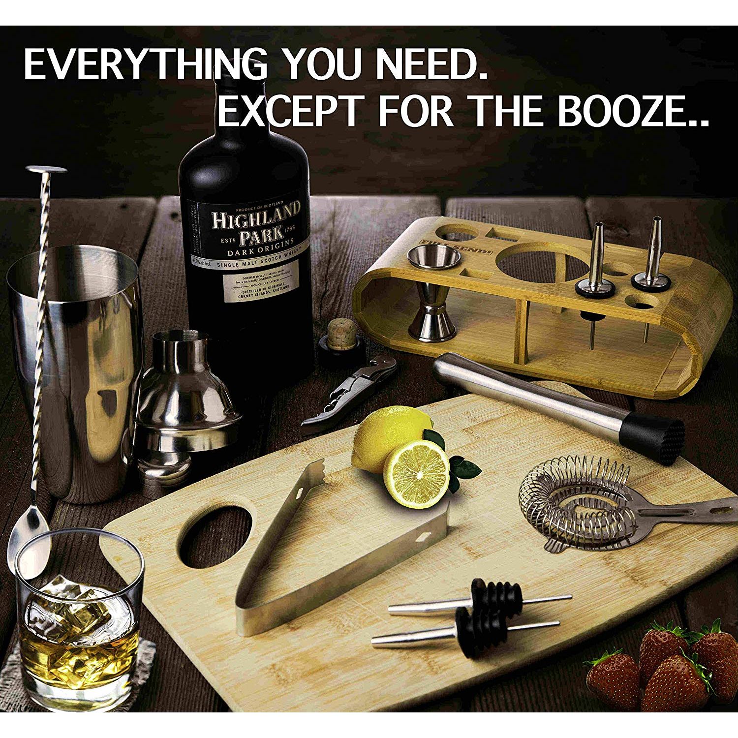 IMPRESS THEM ALL: Full Send ile usta bir mikologsunuz! Sadece tüm temel bilgileri almakla kalmaz, aynı zamanda 77 Şaşırtıcı Kokteyller için bir PLUS kılavuzu alırsınız, aynı zamanda her bir aracın temiz, düzenli ve etkileyici görünmesini sağlayan çevre dostu bambu alet standımız. Aynı zamanda oldukça etkileyici bir hediye olacağı konusunda mantıklı geliyor. - HER ZAMAN MÜKEMMEL İÇECEK: Hadi başlayalım! Bambu Standınızdan Buz Maşalarını alın ve 24oz Buzlukunuzu (Ankastre Metal Süzgeç ile) yükleyin. Çift Taraflı Jigger'ınızı veya 4x Likör Şişesi Pourerlerinizi alın ve alkolünüzü katmanlandırın. İçecek Karıştırıcısını, Mojito Muddler'ı ya da bitirmek için en yetenekli mikolog sallamanı alın! Ayrıca servis için bir Hawthorne Süzgeç ve Çift Kollu Tirbuşon (Bıçaklı) var. - GIDA SINIFI PASLANMAZ ÇELİK: Bu çubuk seti profesyonel barlarda sık sık ev barlarında kullanıldığı için, pas önleyici SS304 ve SS430 Paslanmaz Çelik ve WATERPROOF anti-bakteriyel bambudan yapılmıştır. Tüm çubuk aksesuarları hem dayanıklılık hem de ayna parlaklığı açısından test edilmiştir.