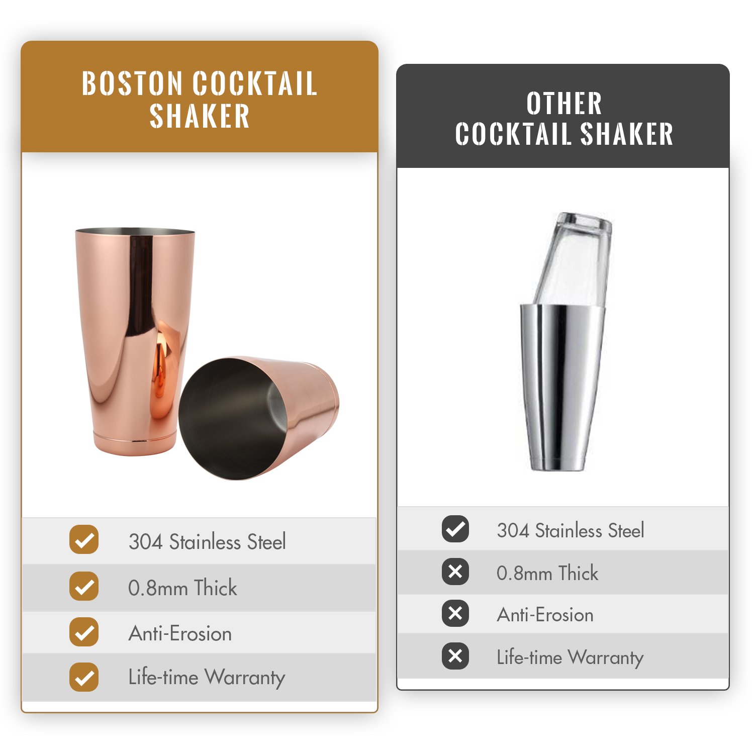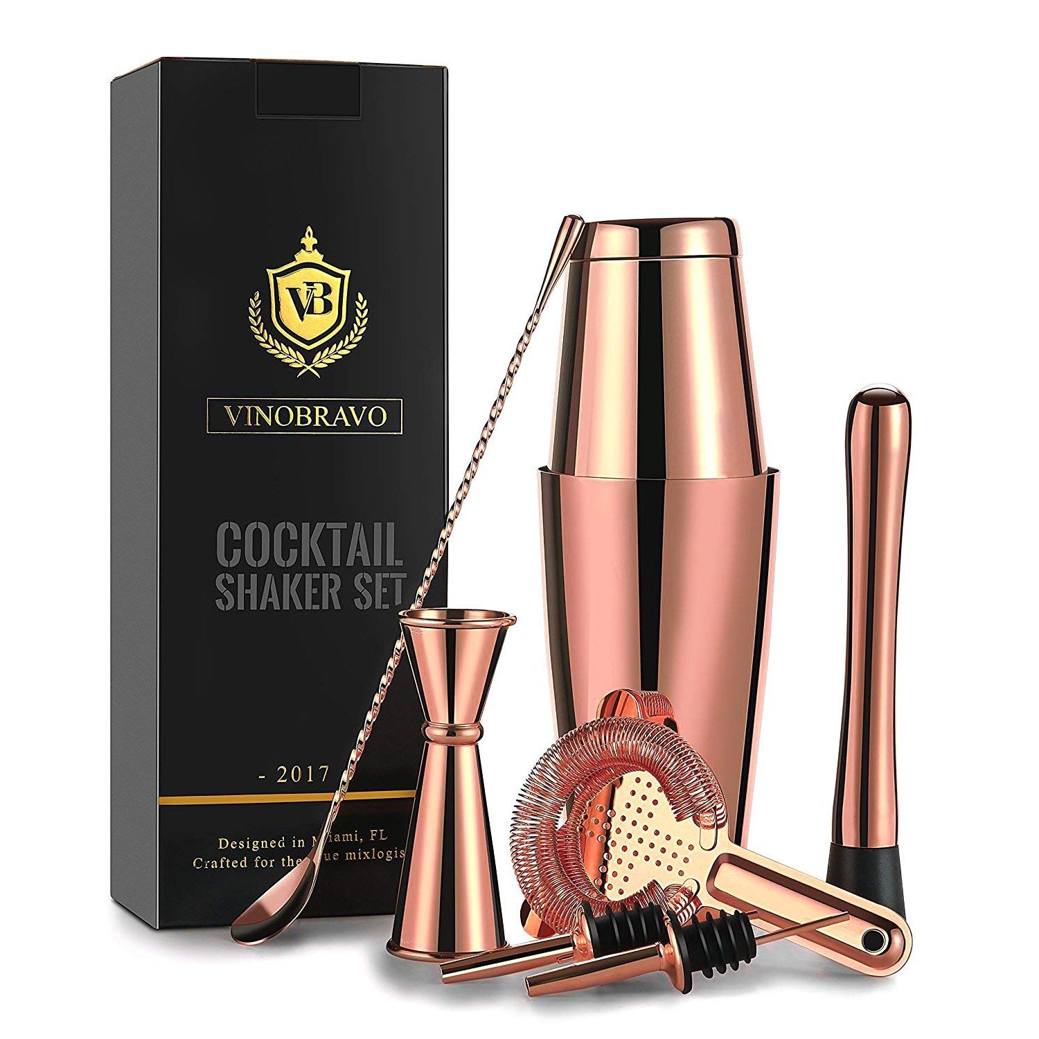 VB VINOBRAVO Boston Kokteyl Shaker Set (Rose Gold)
