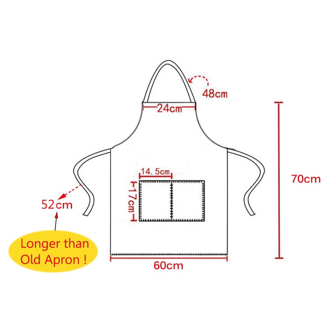 % 75 Polyester% 25 Pamuk - Su geçirmez polyester kumaştan üretilmiştir. Çabuk kurur Pamuktan daha dayanıklı Az kırışıklıklar Renk solmaz. Rekabetçi fiyat Makine yıkanabilir. - Daha ağır, daha kalın ve uzun ömürlü. Ticari sınıf önlükler aşınma ve yıpranmaya karşı dayanıklıdır. - Daha iyi bir işçilik, kayış daha uzundur (resim gösterdiği gibi). Bağlama tüm önlük çevresinde bel bağlarına kadar sarılır. Kayışı çekmesi nedeniyle kolayca düşmemesi için dayanıklıdır.(70X80CM),