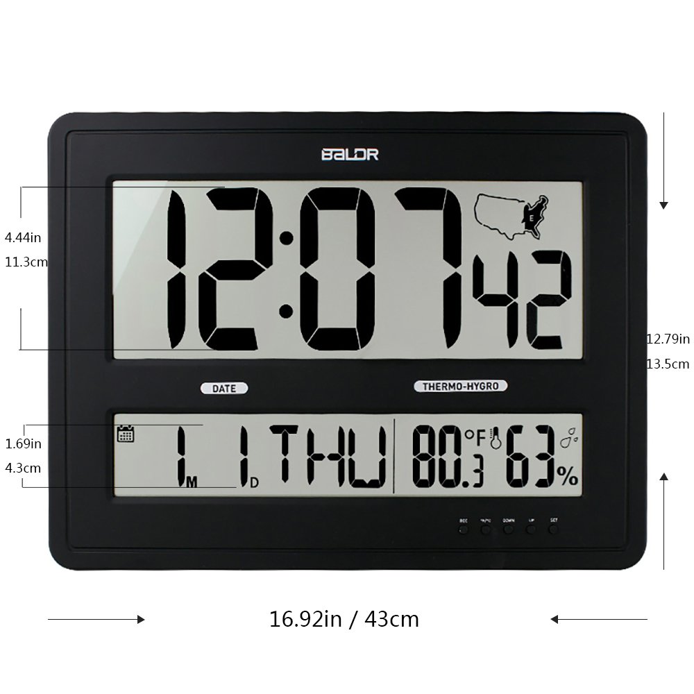 DST ile Atomik Zaman (WWVB), 12/24 Saat İsteğe Bağlı. - Saniye ile Büyük Zaman. - Takvim: Ay, Tarih, Hafta İçi. - İç Ortam Sıcaklığı (F / C), İç Ortam Nemi. - 3 * AA Pil ile Çalışır (Dahil Değil)