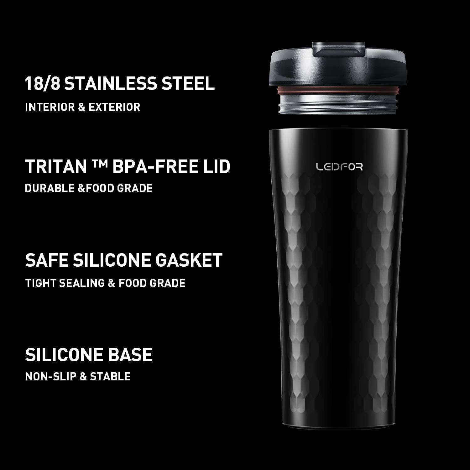 SAATLER İÇİN SICAK VE SOĞUK TUTUN: paslanmaz çelik kahve seyahat kupaları, sıcak veya buzlu kahvenin veya içeceklerin saatlerce (45C / 113F) tadını çıkarmanızı sağlar - FLIP CAP İLE KAPAKLI SIZDIRMA VİDASI: kapaklı vidalı kapak kolay açılır; sızdırmaz bir şekilde sızdırmaz şekilde sızdırmaz olduğundan emin olun - GIDA KALİTE MALZEME: 18/8 paslanmaz çelik iç ve dış, Tritan BPA içermeyen kapak (biberonda yaygın olarak kullanılır) ve gıda sınıfı silikon kauçuk conta. % 100 FDA standardına uygundur.