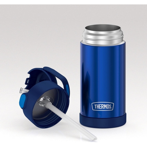 THERMOS vakum izolasyon teknolojisi, sıcak sıvılarla kullanılmayacak şekilde maksimum sıcaklık tutma özelliği - Sağlam paslanmaz çelik iç ve dış yüzey - Açılır saman ve entegre taşıma saplı hijyenik düğme kapağı - 12 saat soğuk tutar, 12 saat soğuk tutar En yüksek ısıl verim için, kullanmadan önce içecek şişesini ısıtın. Soğuk musluk suyuyla doldurun, kapağı takın, 5-10 dakika bekletin ve boşaltın. - 12 ons kapasitesi; el yıkama önerilir