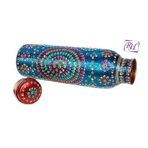 % 100 sızdırmaz şişe tasarlanmış kullanışlı El Boyalı Kabartmalı Sanat eseri, herhangi bir yere taşınabilir. kullanın. Şişe baş aşağı iken bile suyu dışarıda tutan bir conta ile su sızdırmaz. - Rastogi El Sanatları Rehber Kitabı ile birlikte gelir Orijinal Ürün, Fayda ve Bakım ipuçları - Geleneksel Saf Bakır İçecek Gereçleri Şişe Eşyaları - Bu El Boyalı Şişe Yıkanabilir ve Saf Bakırdan Üretilmiştir