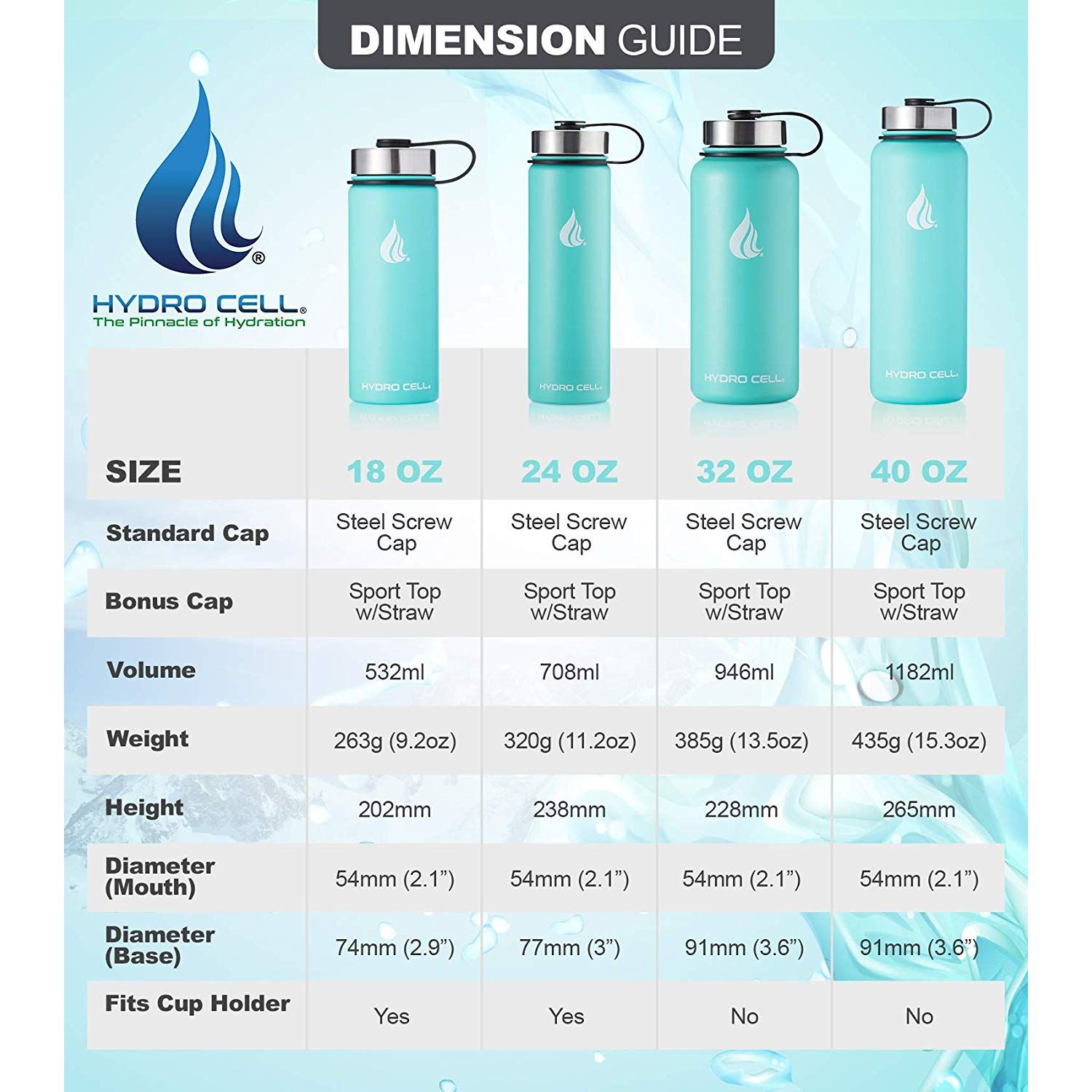 Her şişe iki kapaklı olarak gelir. Hydro Cell Su Şişesi, hava sızdırmaz bir vakum contası oluşturan ve seyahat ve dış mekan maceraları için mükemmel olan, ekli paslanmaz çelik vidalı kapakla standart olarak gelir. Hydro Cell ayrıca Straw'lu bir Bonus Sport Cap ile birlikte gelir, bu kapak hareketli parçalar nedeniyle% 100 hava geçirmez değildir ve atletizm ve kente özgü aktivite için mükemmeldir. - SWEAT YOK, PROBLEM YOK Bu su şişesi, oksidasyon ve korozyona karşı tamamen dayanıklı olan en yüksek kalite 18/8 Paslanmaz Çelik ile birlikte gelir. Kaymaz Toz Boya tabakası, bir egzersiz, yürüyüş veya yoga sırasında şişenize takılmasını sağlar. Hydro Cell, tüm faaliyetler için mükemmel bir arkadaştır. - MÜKEMMEL SOĞUK VEYA SICAKLI SIVI TUTMAK İÇİN MÜHENDİSLER Sıfır yoğuşma ve içeceğinizin ısılı bir odada en fazla ısınmasını sağlamak için su şişesi çift cidarlı ve vakumlu olarak kapatılmıştır. Soğuk sıvılar 24 saat soğuk kalır ve sıcak sıvılar