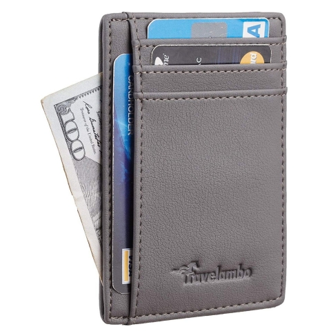 Travelambo Deri ve RFID Engellemeli Kartlık(Gri)
