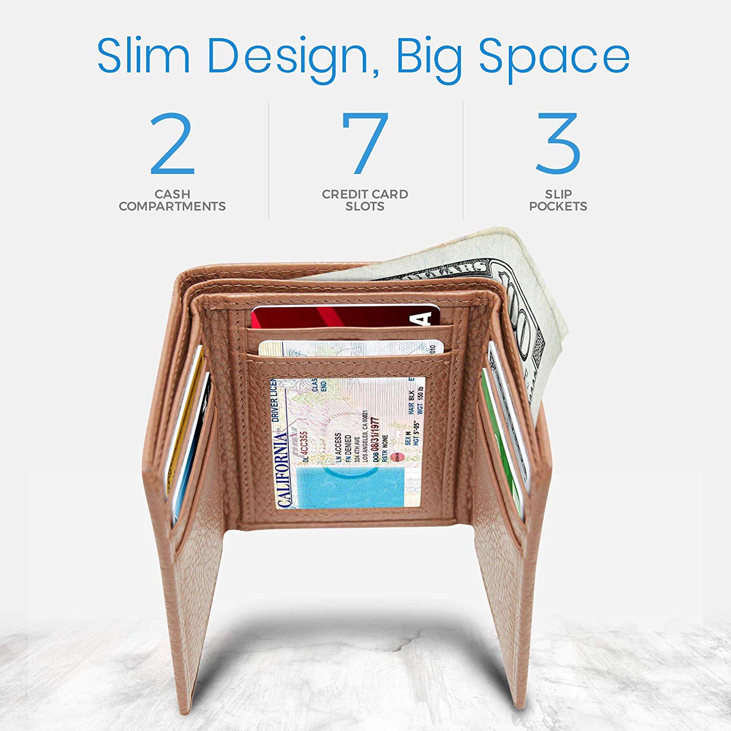 % 100 Gerçek Deri - EL YAPIMI, SON YAPACAK: Bu Üç Katlı cüzdan, yüksek kaliteli bir deriden el yapımıdır ve hassas ve ayrıntılı bir şekilde dikilmiştir. Yıllarca sürmesini bekle! - SLIM TASARIM, BÜYÜK UZAY: İhtiyacınız olan her şey ve daha fazlası için ekstra kapasiteye sahip bir minimalist cüzdan gibi inceltin. ÖLÇÜLER: 4,5 inç x 3,25 inç x 0,75 inç kalınlığında ve 2 nakit bölmesi, 7 kredi kartı yuvası ve 3 fiş cebi bulunmaktadır - SMART WALLET: Kredi Kartlarınız, Bankamatik Kartlarınız, Ehliyet ve Kimlik Kartlarınız için Garantili RFID Engelleme. (NOT: Bu cüzdan kimlik kartlarını, erişim kartlarını veya çok daha düşük bir frekansta çalışan [120-150 KHz] otel odası kartlarını engellemeyebilir). Aynı zamanda kolay erişim için uygun bir başparmak deliği ID penceresi ile birlikte geliyor! - MÜKEMMEL HEDİYE: Şık bir hediye kutusunda, erkekler için mükemmel hediyeler yapan veya bir Doğum Günü, Babalar Günü, Sağdıç Hediyesi, Sevgililer Günü ya da herhangi bir özel durum için hediye olarak gelir. Biz bir