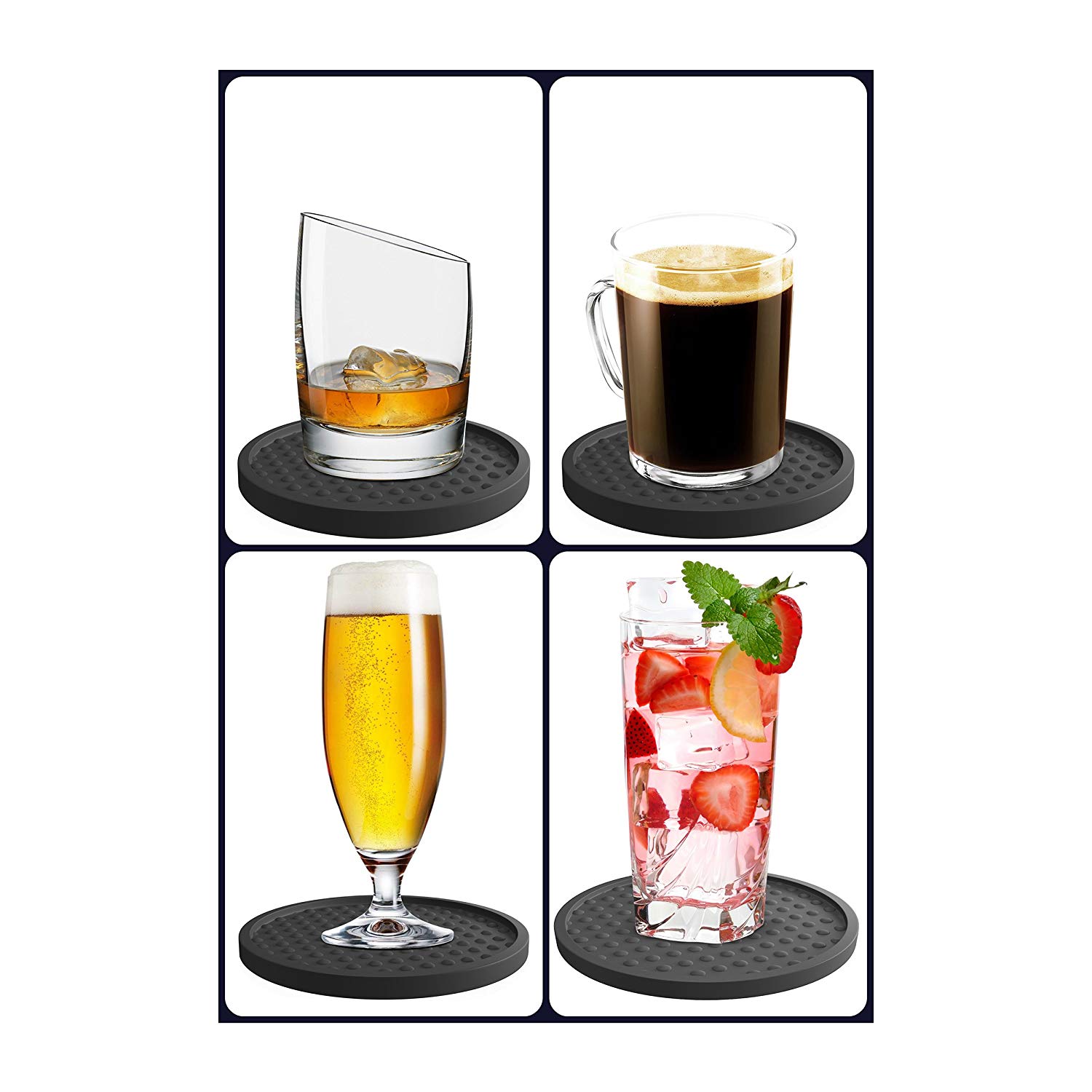 HEDİYE KUTUSUYLA KLASİK İÇECEK HAYVANLARI - En iyi siyah Çevre Dostu toksik olmayan silikondan yapılmıştır. Herhangi bir bardak, şişe, kupa, sürahi, bardak veya bardak için yeterince büyük. İçki kabından fazla dökülme ve yoğuşma toplayacak derin bir tepsi ile benzersiz bir yükseltilmiş kenar içerir. Amerikan restoran ve barlarında kullanılır. - MOBİLYA İÇİN AKILLI KORUMA - Ahşap, granit, cam, bambu plastik, sabuntaşı, kumtaşı, mermer, taş tabla gibi tüm masa tiplerinde kullanılabilir. Masa üstü, ofis masası veya başucu mobilyalarınızı kötü cam izlerinden koruyun. Üst sınıf silikon masanızın yüzeyinde asla iz bırakmaz. Mükemmel iç ve dış mekan veranda emici bardak altlıkları. - SIKIŞTIRMAYAN ÖN VE SİLİNDİRMEYEN GERİ DÖNÜŞ - Camınızın bardak altlığı üzerine yapışmasını önlemek için üstte yüzlerce yapışkan olmayan "tomurcuk" ile tasarlanmıştır. Arka taraf iyi bir tutuş sağlar, böylece içme camınız asla kaymaz. En sevdiğiniz alkol, içki veya başka bir içecek için - bira, şarap, viski, tropik kokteyl, buzlu su