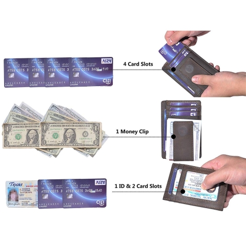 Malzeme: Kalifiye hat kaplamalı, aşınmaya dayanıklı ve uzun ömürlü yüksek kaliteli orijinal Crazy Horse deri. - Boyut: 11 * 7.5 * 0.5cm, ultra ince tasarım ve taşıması kolay. - Yapım: 6 kart yuvası, 1 kimlik penceresi, yan tarafta 1 cep ve 1 güçlü manyetik para klipsi. - Güçlü Manyetizma ve RFID Engelleme: Bol miktarda para ve fatura tutabilir; Hayati bilgilerinizi Güvenli tutar. Electronic Pick cebe karşı güvende ve korunun.