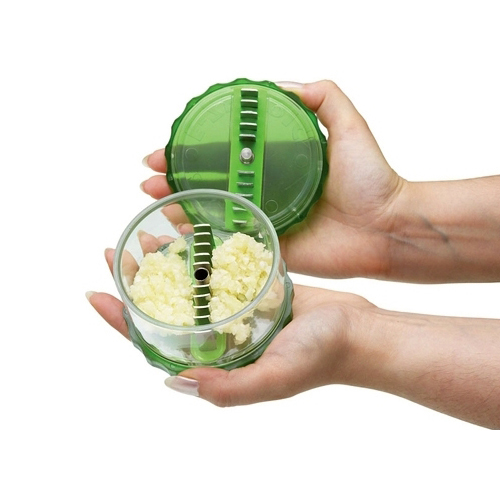 Doğramak için doğrayıcı kaba sarımsakları yerleştirmeniz ve çevirmeniz yeterli