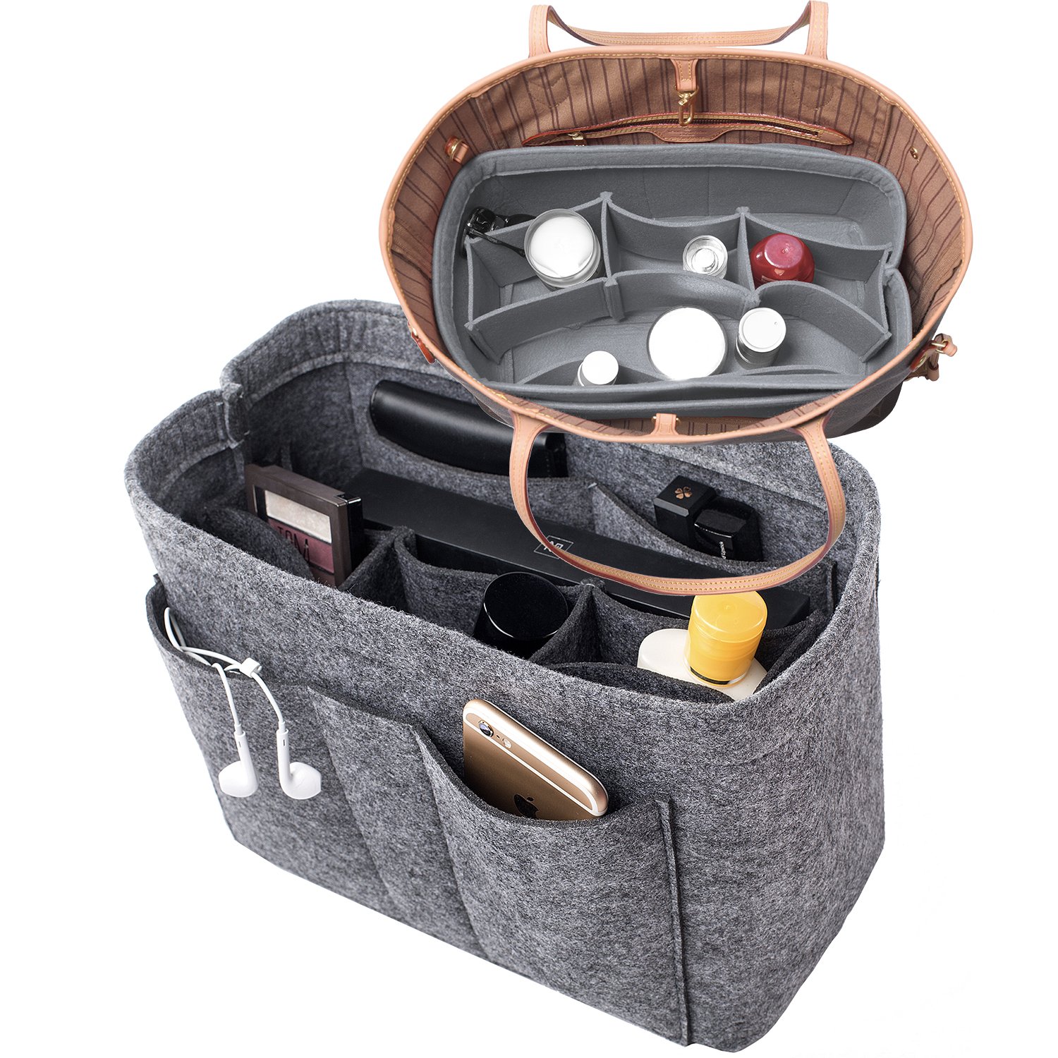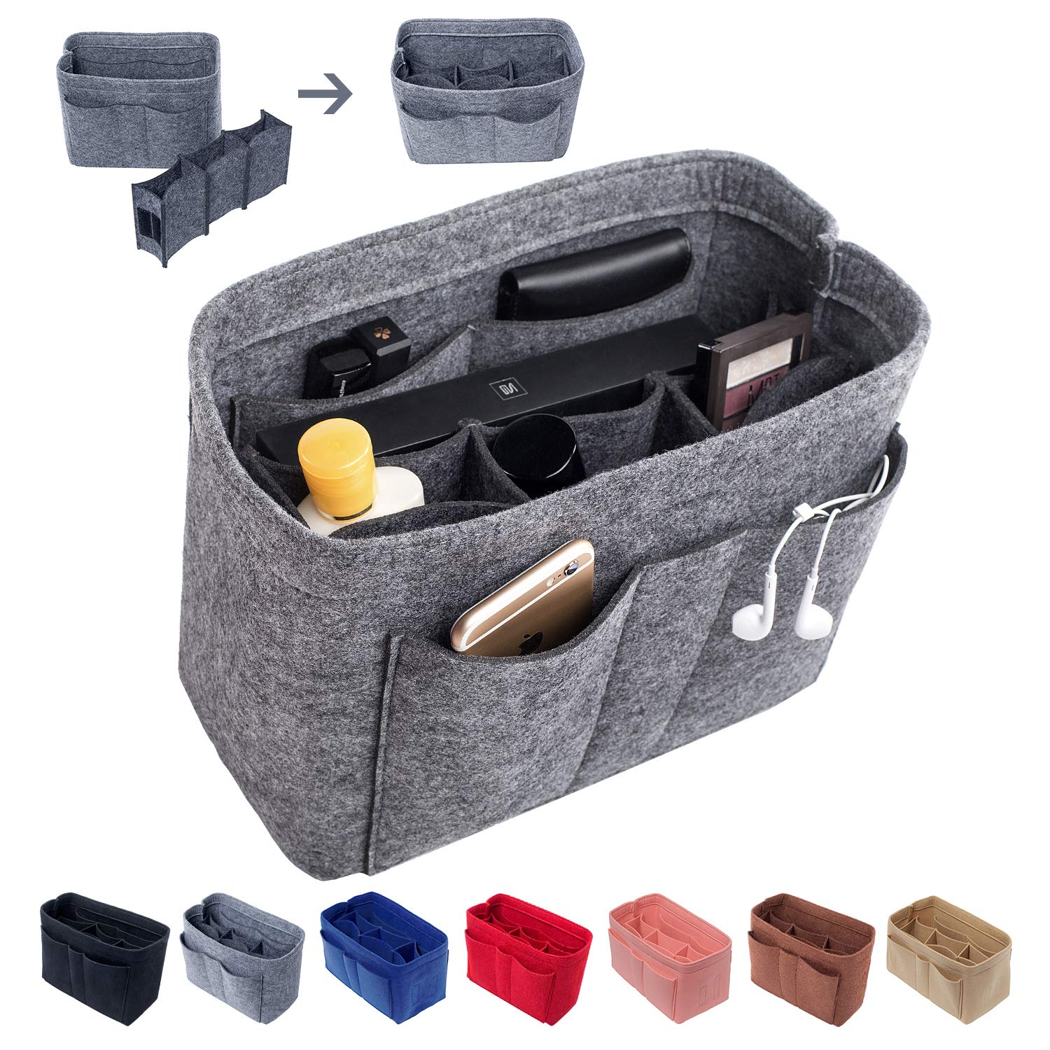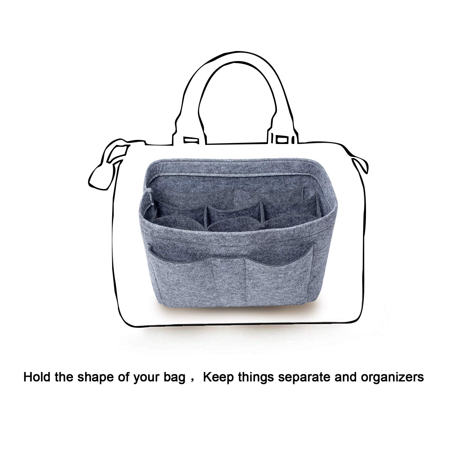 Üç Boyut: Orta: 9 "(G) x 6" (H) x 5 "(D). Büyük: 11.4" (G) x 7 "(G) x 6" (D). X-Large: 13 "(W) x 7" (H) x 6.5 "(D). - Orta bölüm çıkarılabilir, birçok farklı boyutta cep: Kolayca cüzdan, cep telefonu, küçük dizüstü bilgisayar veya rutin olarak kullandığınız her türlü ürüne kolayca uyar - Malzeme: Çok kalın ve sağlam kılan keçeden imal edilmiş Lüks çanta el çantası tote çantanızı uygun bir şekle sokar - Kirletmek için elveda deyin: el çantası organizatörü çanta el çantası tost çantanızı düzenli bir şekilde organize etmenize yardımcı olmaz çantanızdaki kişisel eşyalar - Süper popüler bir bayan çanta el çantası el çantası organizatörü, yorumları okuyun, siz de seveceksiniz ..