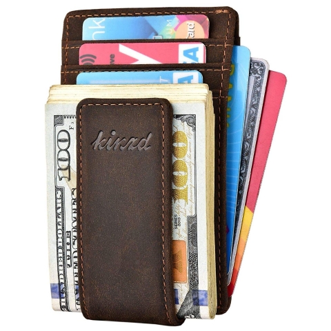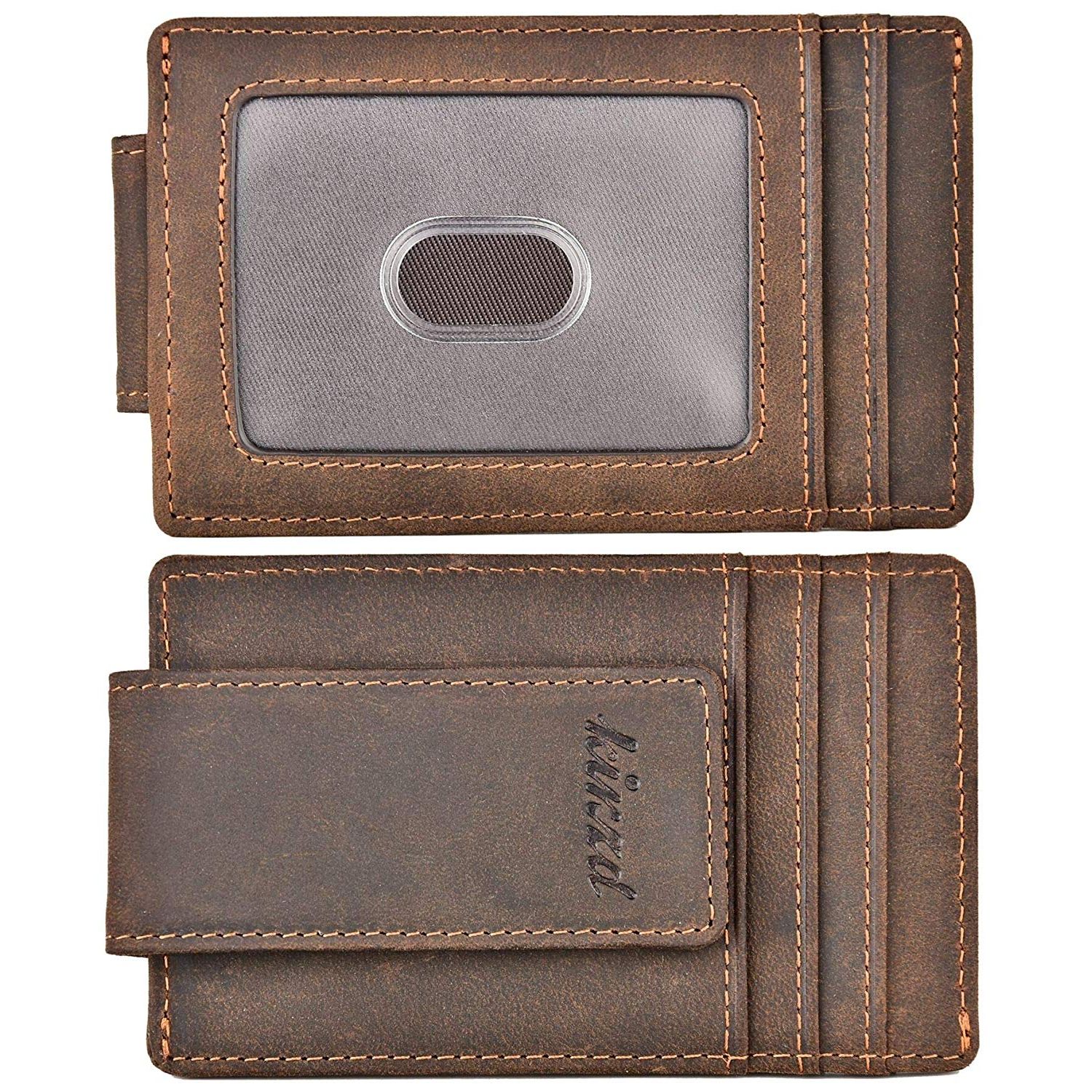 Crazy Horse Deri Cüzdan, Ölçüler: 4.3 "x 2.8" x 0.1 "(11cm x 7.1cm x 0.3cm) - 4 Kart Yuvası, 1 Kimlik Görüntüleme Penceresi, 1 Cebi Değiştir, 1 Güçlü Manyetik Para Klipsi - Güçlü Manyetizma: 4 adet Güçlü Mıknatıslar ile Çok Para ve Kart Parası Tutabilir, Sadece 2 adet Mıknatıs olan normal kartlardan daha iyi - RFID Engelleme Cüzdanı: Kartlardaki hayati bilgilerinizi çalınmasını engeller. banka kartları, ehliyet ve kimlik kartları); 125 KHz frekansını engellemez - Minimalist ve İnce, Ön Cepte Mükemmel uyum, İyi Büyük hacimli cüzdanı değiştirmeyi seçin