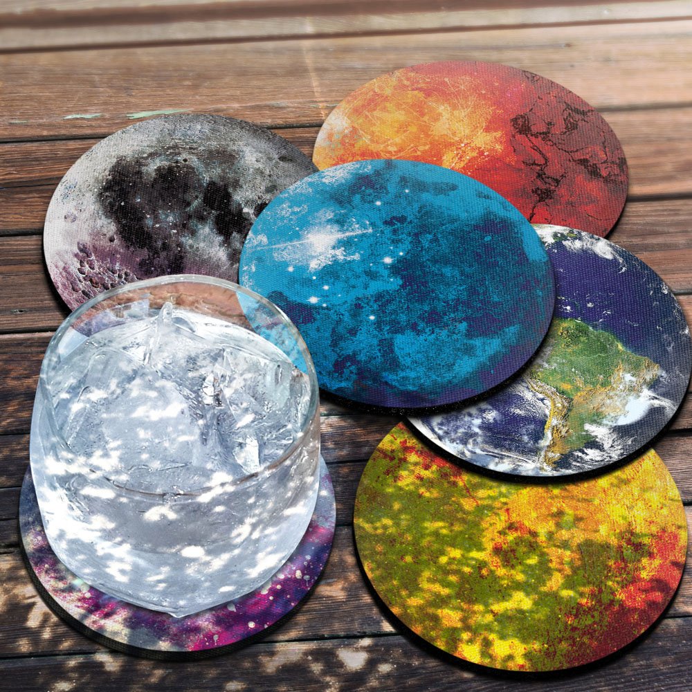 6 yuvarlak emici kumaştan yapılmış keçe neopren bardak altlığı. - Kaymaz lastik sırtlı dayanıklı polyester kumaş üst. - Kolay temizlenebilir, yıkanabilir ve tekrar kullanılabilir. - Tüm normal kupa ve kupa ölçülerine uygundur. - Canlı ve uzun ömürlü renkler ile yüksek çözünürlüklü tasarımlar.