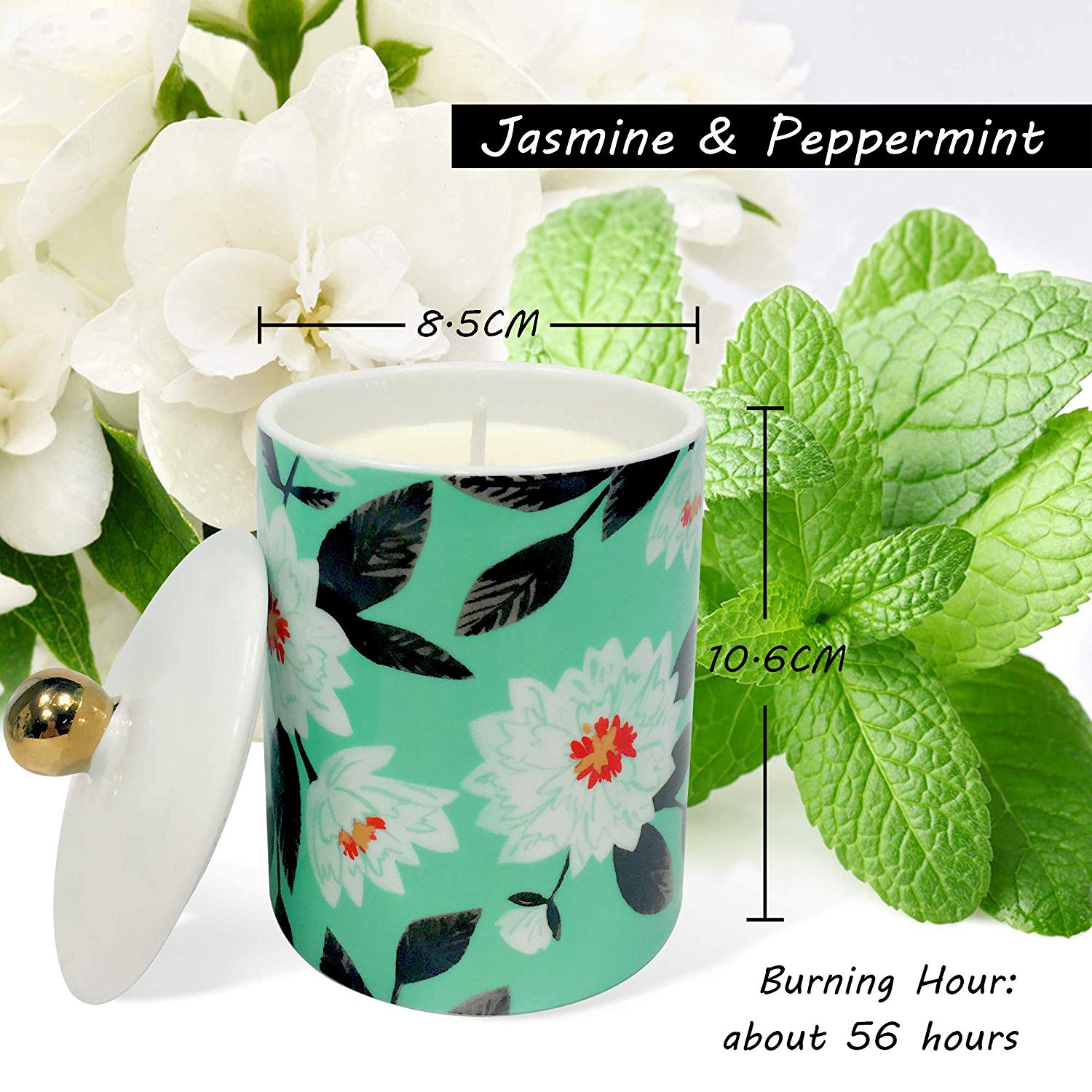 Yüksek KaliteDoğal kokular ve temiz yanan en iyi uçucu yağları kullanırız. Jasmine & Nane kokulu, tatlı, zarif ve hoş, Mükemmel bir uyum sergiliyor ve sizin için ideal kokulu mumu oluşturuyor. - Çevre dostuBu mum, doğal olarak biyolojik olarak parçalanabilir ve çevre dostu% 100 doğal soya balmumu ile üretilmiştir. Bu kokulu mum sadece asitli duman, kalıntı, zararlı toksinler üretmez, aynı zamanda uykusuzluk, arabuluculuk, koku giderici ve benzeri için de kullanılabilir. - Büyük ValueSize: (H) * 5.15 (H) * 3.15 (L), net ağırlık: 9.52oz (270g). Yanma Saati: yaklaşık 56 saat. Kokulu mumumuz daha ekonomik ve zevkli. - Mükemmel HediyePek zarif kokulu mumlarımız porselen fincanla birlikte gelir ve iyi paketlenir. Doğum günü, düğün, evlilik yıldönümü, mezuniyet, yeni eve taşınma partisi, festivaller vb. İçin arkadaşlara, aile üyelerine, müşterilere veya kendinize vermekten memnuniyet duyacaksınız.