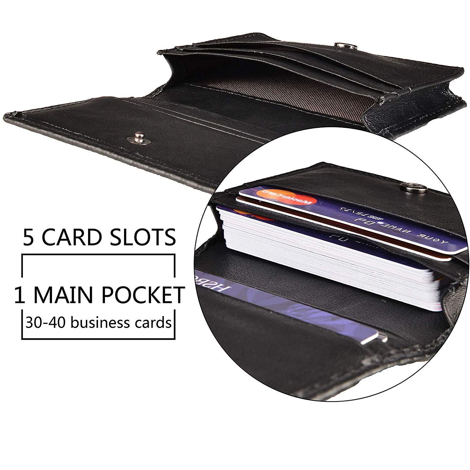 Malzeme:% 100 baş tabakası hakiki deri, yumuşak, rahat nefes alabilir. Astar polyesterden yapılmış, pürüzsüz ve dayanıklı. - Boyut: 10.6cm * 7.6cm * 1cm, kullanım için çok uygun. Ön / arka cebinize koymak kolaydır. - Kapasite: 1 ekran penceresi, 5 kart yuvası ve yaklaşık 40 kartvizit için bir cep. - RFID Engelleme: RFID Engelleme tasarlanmış kaplama, hayati bilgilerinizi Güvenli tutar. Electronic Pick cebe karşı güvende ve korunun.