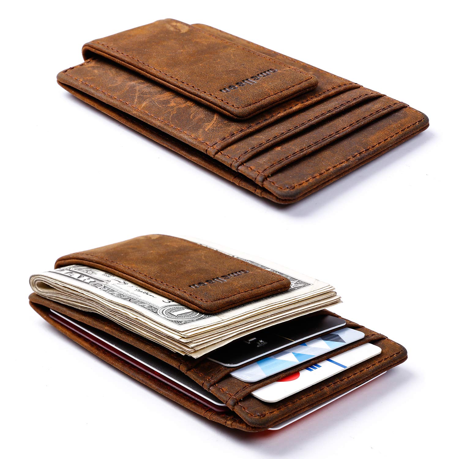 % 100 En İyi Tam Tahıl Çılgın at derisi, birinci sınıf işçilik, şık, daha yumuşak, son birkaç yıldır üretildi - Hızlı erişim kimliği Windows ve Magnetic Money Clip ile ince ve kompakt tasarım 6 karta kadar tutar ve 4 Nadir Toprak Mıknatısı kullanır nakit olarak tutmak, büyüklüğü; L 4.3 "x W 3" x H 0.1 "- RFID engelleme teknolojisi FIPS-201 güvenlik standlarına uygundur, kredi kartınızı ve kimlik güvencenizi saklayın. - Cüzdan bir yıl garantilidir, sorunsuz para iade garantisi vardır.% 100 Risksiz satın alma - Hediye paketi, baba, erkek arkadaş, koca ve arkadaşlar için mükemmel bir hediye.