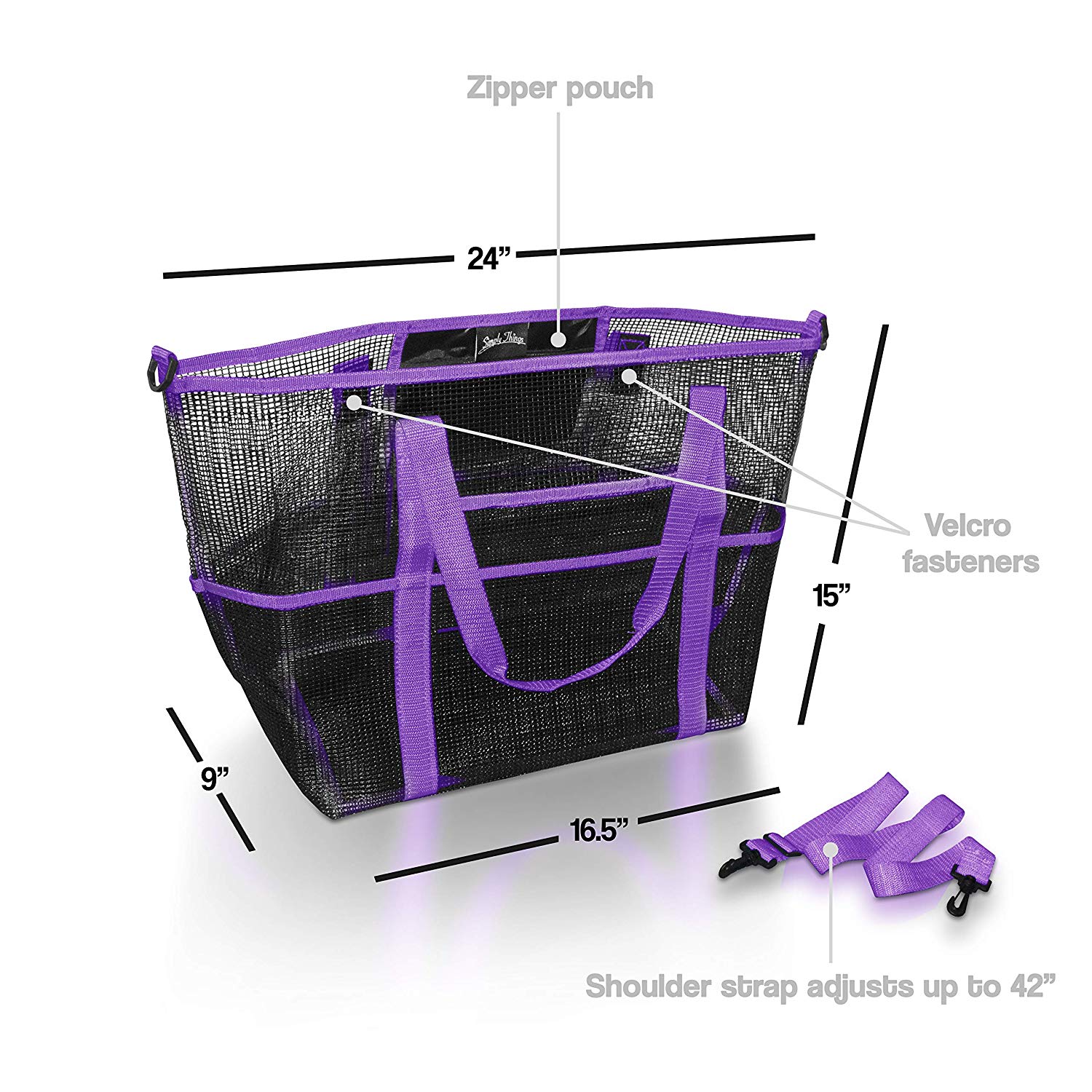 BÜYÜK MESH BEACH BAG - Her şey için yer, Plaj havlusu, su şişesi, güneş gözlüğü, plaj oyuncakları, hoparlörler ve plajda, havuzda, parkta veya kampta bir gün için ihtiyacınız olan her şey. - OMUZ ÇANTASI - Çocukları sahile tüm havlu, plaj havlusu, çocukla ilgili eşyalar ile birlikte getirirken, omuz askımız anneler ve babaların o özel yere giderken küçük ellerini tutmasını sağlar. - KALDIRMALI KATI BOTTOM - Mesh Plaj Çantası, kumun içeri girmesini engellemek için sağlam bir tabana sahiptir. Oyuncaklar bir kez oynandıktan sonra eve gitme zamanı gelmiştir. Bu taban, altındaki ağı ortaya çıkarmak ve kum kaplı eşyaların kolay temizlenmesini sağlamak için yukarı kalkar. Çabuk kurur! - SON YAPILACAK - Bu Geniş Örgü Tote, değerli eşyalarınızı saklamak için uygun bir fermuarlı cebine sahiptir; kapalı olması için üstte Velcro, birçok yaza dayanıklılık ve ekstra dayanıklılık sağlamak için boyunca çift, çapraz ve dikişlidir.