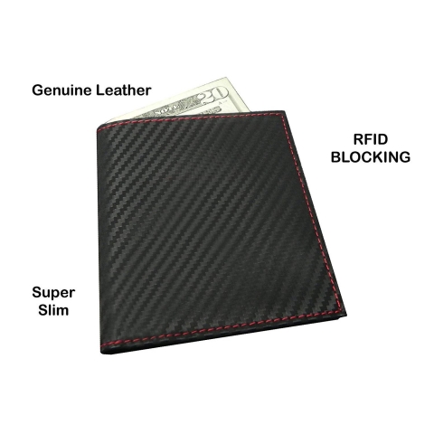 Karbon Fiber Desenli Kabartmalı Hakiki Deri - RFID hırsızlığının önlenmesine yardımcı olmak için cüzdanın içine USD, EUR, GPB, AUS, CAN - RFID engelleme malzemesi yerleştirilmiş