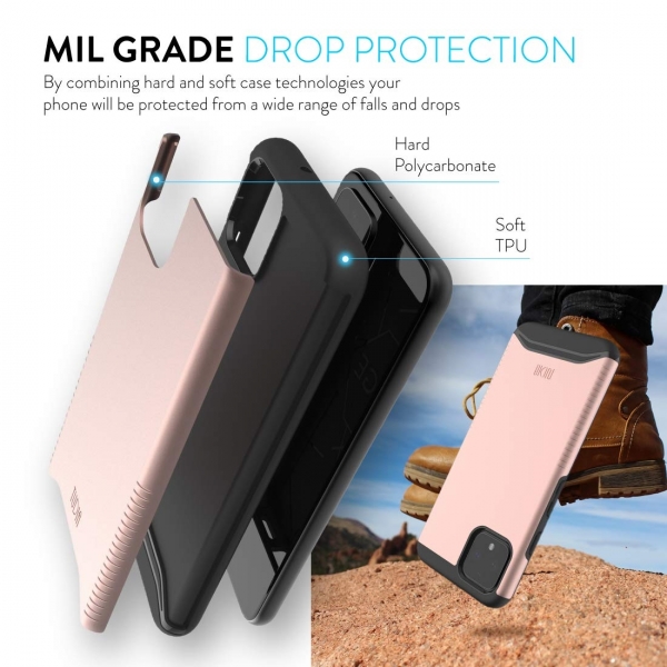 Çift katmanlı tasarımı vardır. Üstün nitelikli polikarbonat dış katmanı ve geliştirilmiş termoplastik poliüretan (TPU) ile çizilmelere ve darbelere karşı koruma sağlar.