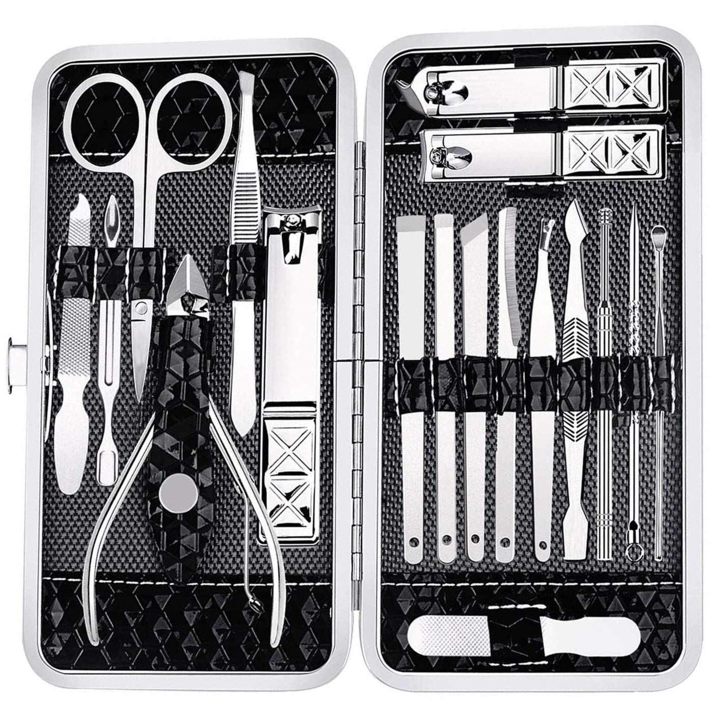 Manikür seti, çoklu araç seçenekleri: Profesyonel Manikür Kiti, el bakımı, yüz bakımı ve ayak bakımı için tüm ihtiyaçlarınızı karşılayabilecek 18 araç içerir.Tek bir tırnak makası veya Burun Saç Makası için ödeme yapmanız gerekmez, paradan tasarruf edilebilir. kalın tırnaklar doğrudan doğrudan kesilebilir, çok fazla güç kullanmaya gerek yoktur. - En kaliteli çelikten yapılmış tırnak makası: Paslanmaz çelik tırnak aletlerimiz, güçlü ve dayanıklı yüksek kaliteli çelikten yapılmıştır ve solmaz, son derece sert ve keskin değildir.Yaşam boyu kullanım için tasarlanmıştır.Manicuring, Pedicuring, Anti-Acne , Peeling, Kaş Şekillendirme. - Bakım Tırnak kiti, tasarımda hafif, mükemmel seyahat ortağınız yapar, olağanüstü ayak, el ve yüz bakım araçları sunar.Kadınlar ve Kadınlar için seyahatlerinizde ve günlük yaşamınızda ayırmak istemeyeceğiniz bir araç. Muhteşem bir deri takım elbise ile Paslanmaz Çelik Manikür Kitimiz, modaya uygun, aile ve arkadaşlar arasında popüler ve popülerdir.