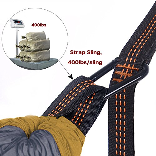 GÜÇLÜ VE RAHAT: Yüksek mukavemetli ve nefes alabilen 201T paraşüt naylon ve üçlü kilitleme, 800lbs'ye kadar güvenli bir şekilde desteklenir. Boyut 125 x 78 (320cm x 200cm), ikisi için yeterince büyük ve biri için geniş. - HAFİF VE KOLAY TAŞI: Paket, çift boyutlu kamp hamakları, 2 katı çelik karabina ve 2 ağaç askısı içerir. Hepsi, 1.04kg ağırlığında tutturma kayışı ile bağlı ipli malzeme çuvalına sığabilir ve taşınabilir hale getirebilir. - 32 LOOPS AYARLANABİLİR STRAPS: 1000D yüksek yoğunluklu polyester dokumadan üretilen 2 kayış 800 lbs'ye kadar destekleyebilir. Kayış başına 3 metre uzunluk ve 16 halka ile 32 büyük ayar noktası sunarak büyük ağaçların etrafına sarmanıza veya tavan raflarına, tekne direklerine veya elinizdeki her şeye takmanıza olanak tanır. - KOLAY KURULUM VE GENİŞ KULLANIM: Hızlı asılı kurulum için ihtiyacınız olan her şey vardır. Ağaç kayışlarını sarın, hamayı malzeme çuvalından açın ve hamak kayış halkasına asın. Basit 3 adım ve u ayarlamak için sadece 3 dakika sürer