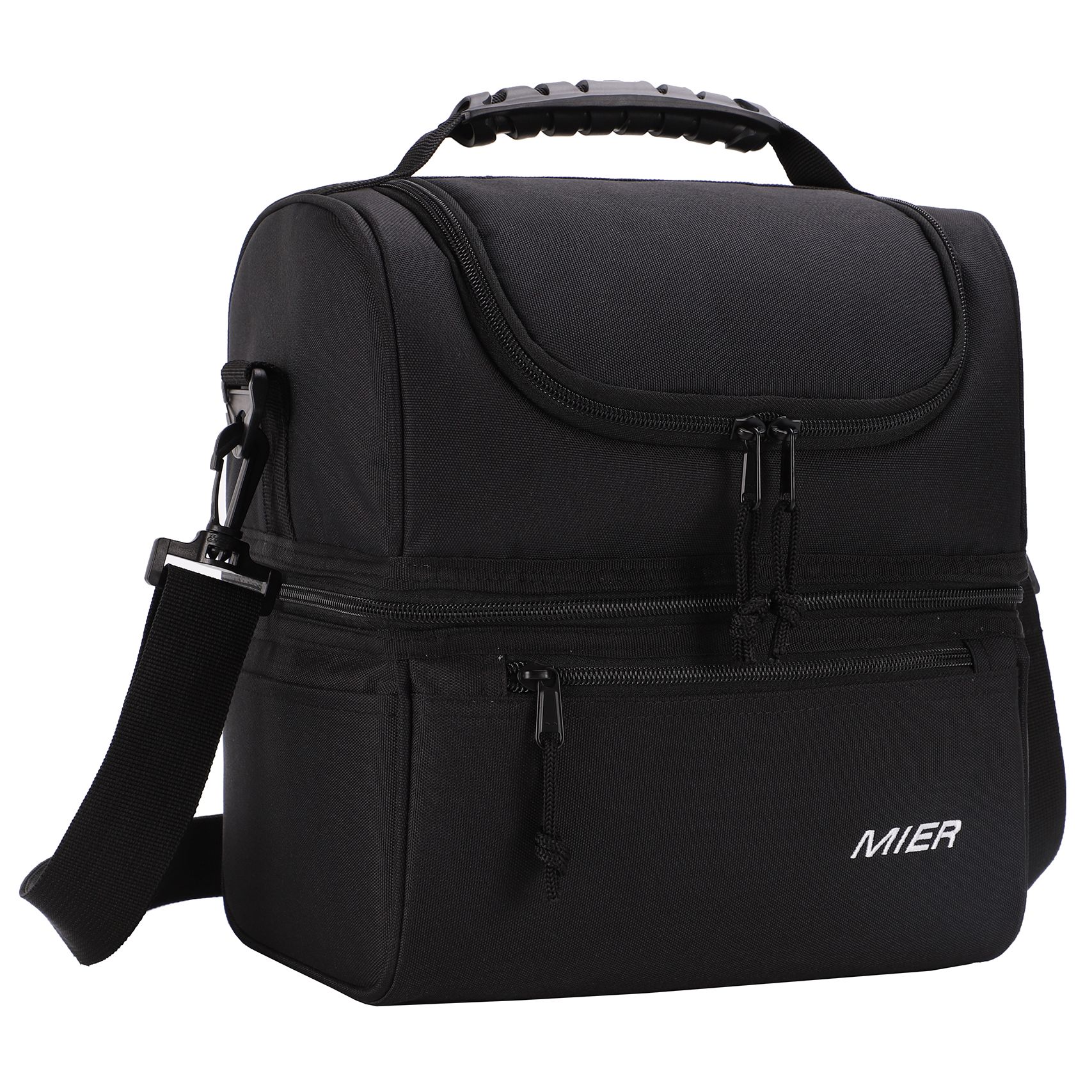 2 Bölmeli Öğle Yemeği Çantası ---- Üst "kuru" bölüm, otomatik erişim için esneyen U-açma ve çift fermuarlı çekişlere sahiptir, meyveler, atıştırmalıklar veya turtalar gibi sızmayan ürünler için idealdir. Alt "soğuk" bölüm, içecekler, su, meyve suyu ve benzeri için mükemmel yumuşak PEVA astar ile sızdırmaz izolasyonludur. Temizlemesi kolay - Yalıtımlı Öğle Yemeği Çantası ---- Kalın iç yalıtım ve gıda sınıfı güvenli PEVA astar soğukluğu veya sıcaklığı korur, saatlerce soğuk / sıcak / taze kalmasını sağlayabilir, ısı kaynaklı dikişler sızıntılara karşı koruma sağlar; Temizlemesi kolay. Üst bölüm iç boyutu 8.7L * 6.3W * 4.3D inç, Alt bölüm iç boyutu 8.7L * 6.3W * 5.5D inç - Taşınması Rahat ---- Kolay taşıma için çıkarılabilir ve ayarlanabilir omuz askısı. Ayrıca, ayarlanabilir uzunluk (MIN: 31.5 ", MAX: 55.5"), eller serbest bir taşıma deneyimi için çoğu insanı omzunun etrafına bir şapka damlaında sığdırır. MIER özel tasarım 2.0 silikon tutamak rahat bir kavrama sağlar - Yüksek Güvenilir Soğutucu ---- Bir ön fermuarlı kese
