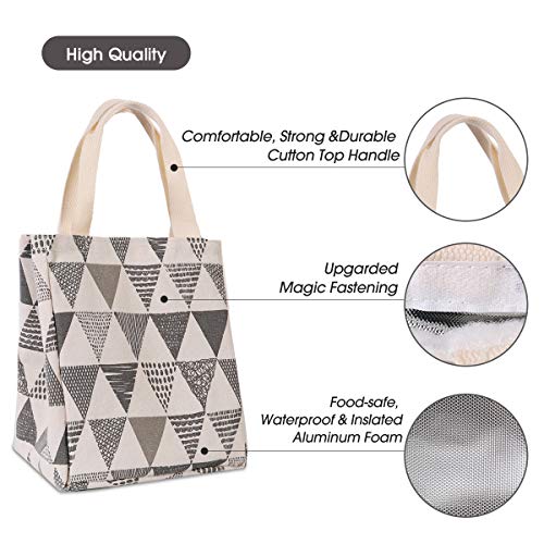 MALZEME - Süper yalıtımlı iç kalınlaştırılmış EPE köpük + alüminyum folyo, yiyeceklerinizi saatlerce sıcak / soğuk / taze, su geçirmez, temizlemesi kolay BPA içermez. Eski Velcro üstünü çok yönlü kancaya yükseltiriz ve daha iyi çalışması için Velcro'yu döngüye alırız. - GÜVENLİ VE YENİDEN KULLANILABİLİR - Bu öğle yemeği çantası, size uzun süreli kullanım sağlayan gıda güvenli,% 100 toksik olmayan, neme dayanıklı, aşınmaya dayanıklı ve paslanmaya karşı dayanıklıdır.Ayrıca, anahtarları koymak için bir iç cep, telefon , kartlar veya çantanız. - BÜYÜK KAPASİTE - Boyut: 8.3Lx6.5Wx10.5H inç, yükseltilmiş daha uzun saplı.Bu öğle yemeği tote, büyük miktarda yiyecekleri paketlemek için harika, hatta ihtiyacınız olan tüm gün yiyeceklerini içerebilir, hatta iş, dış mekan ve günlük kullanım için uygundur . - ÇOK FONKSİYONLU - Bu yeniden kullanılabilir kanvas tote çantalar birçok depolama ihtiyacına çekici ve hafif bir çözüm sunar. Kadınlar, erkekler ve çocuklar için yemek, atıştırmalık, içecek, içecek taşımak veya sadece kapmak ve çanta olarak kullanmak için şık bir yoldur.