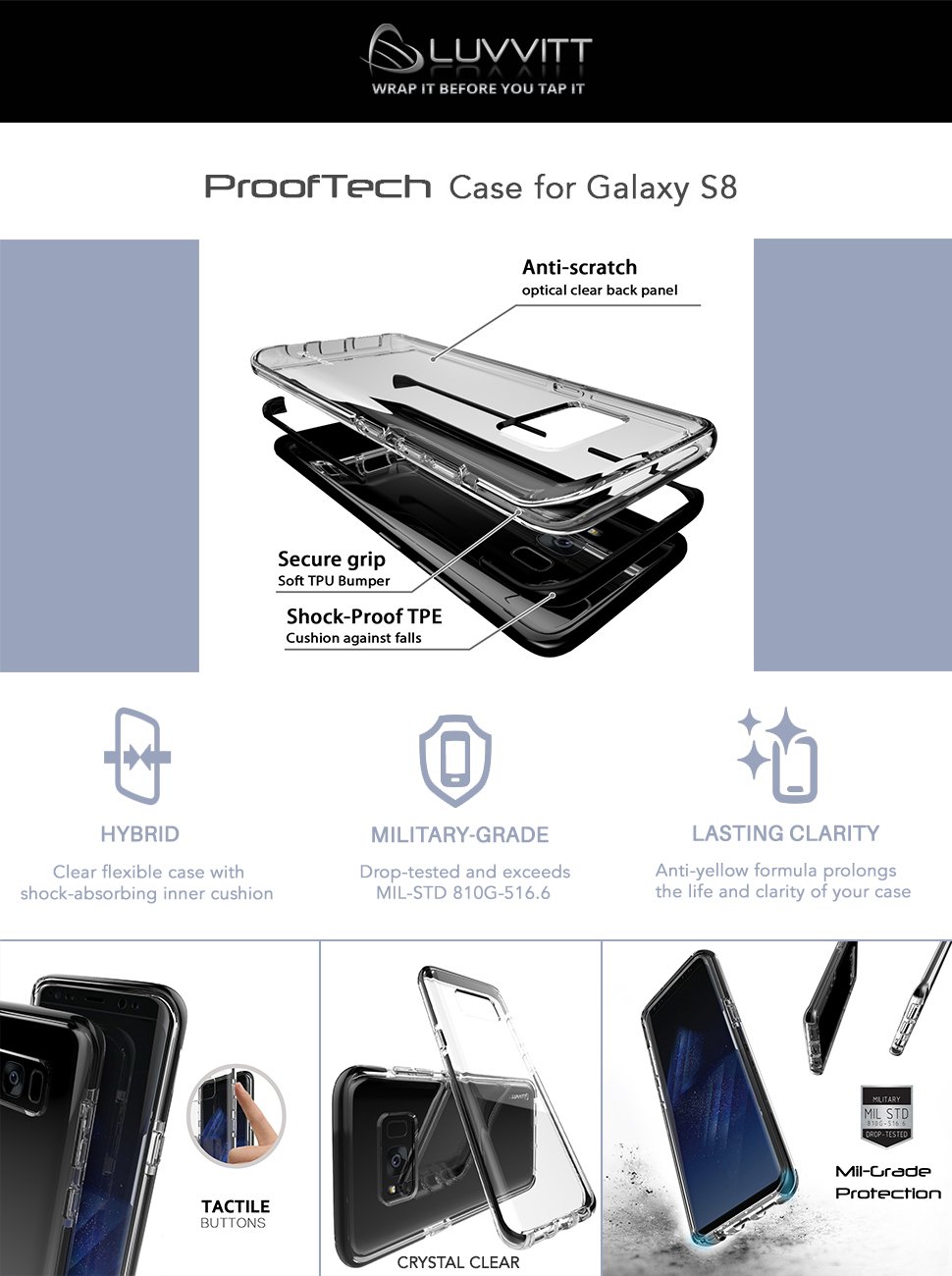 LUVVITT Samsung Galaxy S8 Kılıf (Clear / Black) ürünü Galaxy S8 ile tam uyumludur.