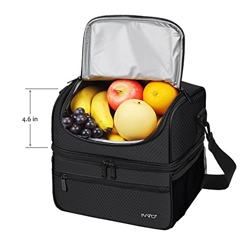 EKSTRA BÜYÜK KAPASİTE - 10,7 x 8,5 x 10,5 inç (U x G x Y), 13 L geniş kapasite, öğle veya piknik için ihtiyacınız olan her şeyi kolayca saklayabilir. Alt bölme, 12 teneke soda (330ml) depolamak için yeterince geniştir. - YALITIMLI VE SIZDIRMAZ KAPLAMA - 5mm kalınlığında PE köpük dolgu ve PU yalıtım malzemesi, yiyeceklerinizi saatlerce sıcak veya soğuk tutabilir, ısı kaynaklı teknoloji, öğle yemeğinin iç kısmını sızdırmaz ve kolay temizlenebilir, bento'da çorba veya içecekler için asla endişelenmeyin çantanızdan sızan ve masaya bir karışıklık yapmak. - ÇOKLU KULLANIM - Kolay erişim için çift fermuarlı tasarım. İki yan file ve ön cepte küçük şeyler saklayabilirsiniz. Bu öğle yemeği çantası ayrıca piknik veya seyahat için yalıtımlı soğutucu olarak da kullanılabilir. - ÇİFT BÖLMELİ TASARIM - Çift katlı tasarım yiyeceklerinizi düzenlemenizi kolaylaştırır. Yemek hazırlama bento kaplarını veya sandviçleri alt katmanda saklayabilirsiniz, üst katman meyve veya içecek depolamak için daha uygundur. Alt / yukarı iç boyutları