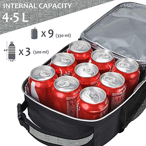 GIDA VE İÇECEK SOĞUK TAZE SAAT TUTUN - 600D polyester, yalıtılmış ve çarpmaya karşı dayanıklı yastık ve sızdırmaz PEAV tabakasından üretilmiştir, yiyeceklerinizi saatlerce sabit sıcaklıkta tutar. Kadınlar, erkekler ve çocuklar için yiyecek, atıştırmalıklar, ofise öğle yemeği, iş ve spor salonuna taşımak için Pefect. - KOMPAKT BOYUT - 8.5 "x 4" x 9.5 "(U x G x Y). 9 kutu sodaya (330ml) kadar tutacak kadar büyük, 1 adet yiyecek kabı, 3 şişe su (500ml). - ÇOKLU CEPLER - Peçeteleri, çeşni paketlerini veya sıkça ihtiyaç duyulan eşyaları saklamak için uygun olan 1 iç file cep, 1 yan nesh cep ve 1 ön cep ile donatılmıştır - eğer SPLASH DAYANIKLI YÜZEY - Tirrinia öğle yemeği çantasının yüzeyi dökülmeye karşı dayanıklıysa, çorba, yağmur, öğle yemeği çantasının yüzeyine kirli su dökülmesi, mendil veya havlu ile silebilir, öğle çantasını kirlenmekten koruyabilirsiniz - SÖKÜLEBİLİR TOKA KOLU - Tokalı güçlü tutma kolu çıkarılabilir, takabilirsiniz sırt çantası, evrak çantası, spor çantası veya seyahat çantası shoudler kayışı üzerinde. taşıması kolay.