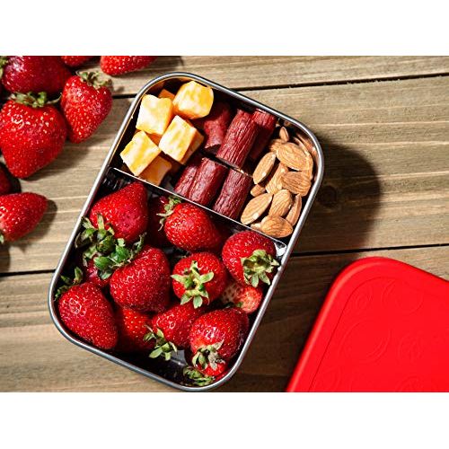 YÜKSEK KALİTELİ MALZEME İÇİN KULLANIM GÜVENLİ Lunchet paslanmaz çelik öğle yemeği kutuları% 100 plastik ve BPA içermez ve bu nedenle plastik kaplarda bulunan zararlı maddeler içermez. Toksik Olmayan öğle ve atıştırmalık kutularımız, Gıda Sınıfı Silikon Kapaklı yüksek kaliteli 18/8, SUS 304 Paslanmaz Çelikten oluşur. Çevre dostu, plastik içermez, uzun ömürlüdür ve çevre için daha iyidir. - HAFİF, OKUL VEYA ÇALIŞMA AKSESUARLARI İÇİN EN İYİ Meyve desenli parlak kırmızı bir kapakla gelirler. Bu silikon öğle yemeği kapları hafiftir, bu nedenle çocuğunuz çantasında kolayca taşıyabilir. Ayrıca ofise ve seyahat ederken kolayca taşınabilirler. Konteyner, yiyecekleri kolayca ayırabilmeniz için sabit bir ayırıcıya sahiptir. Atıştırmalıklar için iyi. - BULAŞIK MAKİNESİ, DONDURUCU VE FIRIN GÜVENLİ Konteynerlerimiz çok dayanıklıdır ve dondurucuda soğuk yiyecekleri saklamak için güvenle kullanılabilir