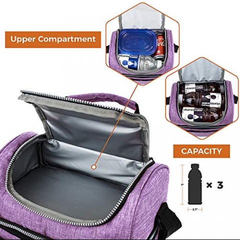 9 kutuya kadar uyar | Önlemler 10 x 7.5 x 10 (U x G x Y) | 12 renkte mevcuttur - ÇİFT KATLI ÖĞLE YEMEĞİ SOĞUTUCU ÇANTA - İki yalıtımlı bölüm, sıcak ve soğuk yiyecekleri ayrı ayrı paketlemenizi sağlar. Alt sızdırmaz büyük bölme, yemek kapları ve içecekler için idealdir ve üst bölme, meyve ve atıştırmalıkları soğuk tutmak için mükemmeldir. - SIZDIRMAZ VE TERMAL İZOLELİ Yumuşak ve kolay temizlenebilir çevre dostu sızdırmaz PEVA astar ile donatılmıştır. Sadece ıslak bir bezle silin ve yeni gibi iyi! Dayanıklı ve yırtılmaya karşı dayanıklı, öğle çantamız 600D Polyester kumaştan yapılmıştır ve dayanıklılık için güçlendirilmiş fermuarlara sahiptir. - FERAH VE ÇOK YÖNLÜ - Ayarlanabilir omuz askısı ve üst sap, bu öğle yemeği çantasını istediğiniz gibi kolayca taşımanıza izin verir. Su şişelerini taşımak için iki yan örgü cep ve öğle yemeği çantanızı düzenli tutmak için mutfak eşyaları için iki ön cep içerir.