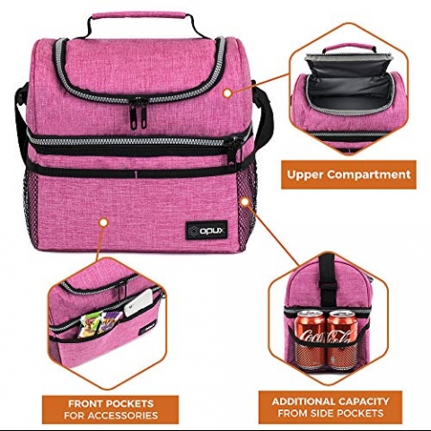 9 kutuya kadar uyar | Önlemler 10 x 7.5 x 10 (U x G x Y) | 12 renkte mevcuttur - ÇİFT KATLI ÖĞLE YEMEĞİ SOĞUTUCU ÇANTA - İki yalıtımlı bölüm, sıcak ve soğuk yiyecekleri ayrı ayrı paketlemenizi sağlar. Alt sızdırmaz büyük bölme, yemek kapları ve içecekler için idealdir ve üst bölme, meyve ve atıştırmalıkları soğuk tutmak için mükemmeldir. - SIZDIRMAZ VE TERMAL İZOLELİ Yumuşak ve kolay temizlenebilir çevre dostu sızdırmaz PEVA astar ile donatılmıştır. Sadece ıslak bir bezle silin ve yeni gibi iyi! Dayanıklı ve yırtılmaya karşı dayanıklı, öğle çantamız 600D Polyester kumaştan yapılmıştır ve dayanıklılık için güçlendirilmiş fermuarlara sahiptir. - FERAH VE ÇOK YÖNLÜ - Ayarlanabilir omuz askısı ve üst sap, bu öğle yemeği çantasını istediğiniz gibi kolayca taşımanıza izin verir. Su şişelerini taşımak için iki yan örgü cep ve öğle yemeği çantanızı düzenli tutmak için mutfak eşyaları için iki ön cep içerir.