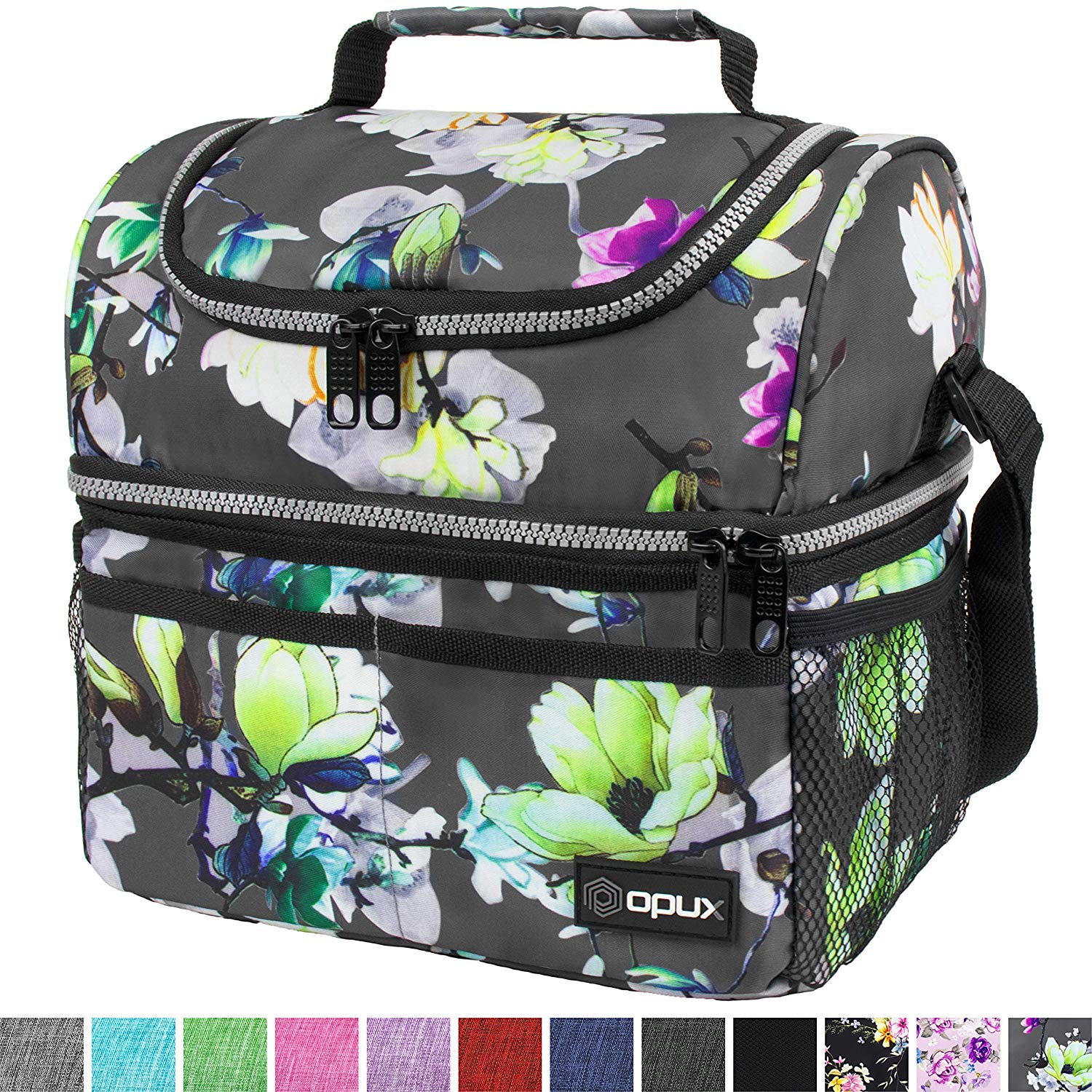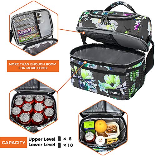 OPUX Yalıtımlı Beslenme / Yemek Çantası (Siyah Çiçekli)(Medium)