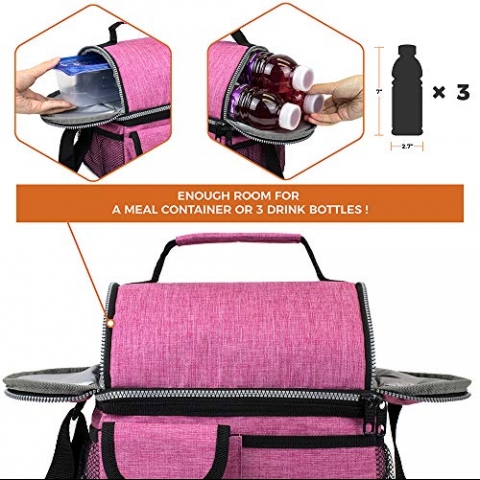 SIZDIRMAZ VE TERMAL İZOLELİ Çevre dostu PEVA astar ile donatılmıştır Yumuşak ve temizlenmesi kolaydır. Sadece ıslak bir bezle silin ve yeni gibi iyi! Altı paket sodaya uyacak kadar geniş, bir kişi öğle yemeği ve daha fazlası için yeterli alan! Ve eğer bu yeterli değilse, üst bölmede başka bir yiyecek kabı veya 3 standart boy su şişesi taşımak için yeterli alan var! - AYRI SICAK VE SOĞUK GIDA Bu öğle yemeği çantası yiyeceklerinizi paketlemenin farklı yollarını sunar. 2 izole bölmesi, sıcak ve soğuk yiyecekleri / içecekleri ayırmanızı sağlar ve iki taraflı fermuar tasarımı, kolay ve rahat erişim sağlar. Bu ekstra alanla, buz paketlerinin ve buz bloklarının yemeğinizi ekstra taze tutması da harikadır. - DAYANIKLI VE RIPA DAYANIKLI Yüksek kaliteli naylon ve yırtılmaları önlemek ve maksimum dayanıklılık sağlamak için güçlendirilmiş fermuarlı 600D polyester kumaştan üretilmiştir. - ÇOK KULLANIM VE UYGUN: Erkekler ve kadınlar için iş, okul, piknik, plaj, yol gezileri, yiyecek ve içecek