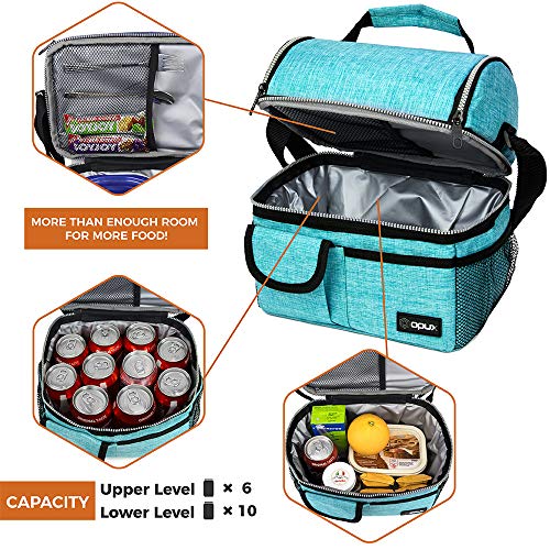 SIZDIRMAZ VE TERMAL İZOLELİ Çevre dostu PEVA astar ile donatılmıştır Yumuşak ve temizlenmesi kolaydır. Sadece ıslak bir bezle silin ve yeni gibi iyi! Altı paket sodaya uyacak kadar geniş, bir kişi öğle yemeği ve daha fazlası için yeterli alan! Ve eğer bu yeterli değilse, üst bölmede başka bir yiyecek kabı veya 3 standart boy su şişesi taşımak için yeterli alan var! - AYRI SICAK VE SOĞUK GIDA Bu öğle yemeği çantası yiyeceklerinizi paketlemenin farklı yollarını sunar. 2 izole bölmesi, sıcak ve soğuk yiyecekleri / içecekleri ayırmanızı sağlar ve iki taraflı fermuar tasarımı, kolay ve rahat erişim sağlar. Bu ekstra alanla, buz paketlerinin ve buz bloklarının yemeğinizi ekstra taze tutması da harikadır. - DAYANIKLI VE RIPA DAYANIKLI Yüksek kaliteli naylon ve yırtılmaları önlemek ve maksimum dayanıklılık sağlamak için güçlendirilmiş fermuarlı 600D polyester kumaştan üretilmiştir. - ÇOK KULLANIM VE UYGUN: Erkekler ve kadınlar için iş, okul, piknik, plaj, yol gezileri, yiyecek ve içecek