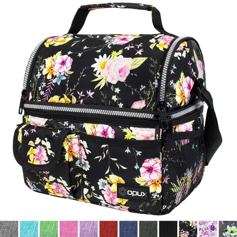 OPUX Yalıtımlı Yemek Çantası (Siyah Çiçekli)(Large)