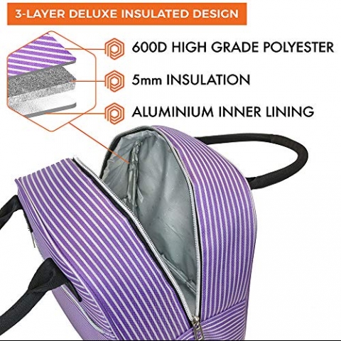 OPUX Yalıtımlı Yemek Çantası (Mor Çizgili)