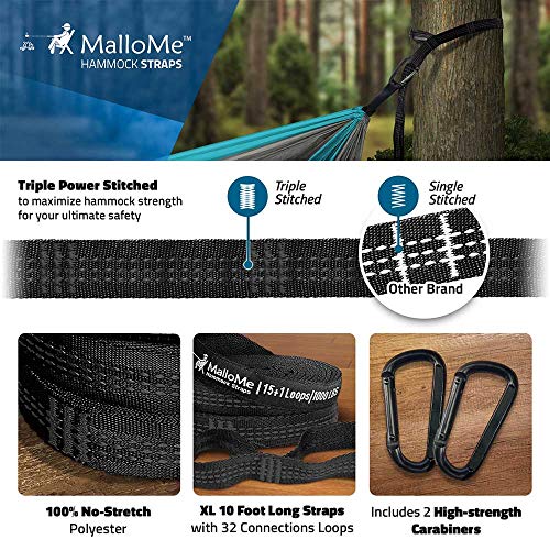 EN İYİ SATAN MALLOME HAMMOCK STRAPS DAHİL! Yoğun talep nedeniyle bir dizi popüler MalloMe Hamak Askısı ve ALL IN ONE setinde engelsiz karabinalar içeren 20 yeni hamak rengi piyasaya sürdük. - EKSTRA BÜYÜK BOY - Bu çift paraşüt kamp hamakta daha fazla yer. Lüks boyutta, 300 x 200cm (118 x 79 In.) Ölçülerinde. İki büyük yetişkine rahatça sığar. - SÜPER GÜÇLÜ - Benzersiz kayış tasarımı 1000 lbs kopma mukavemetine sahiptir! Çoğu rakipten iki kat daha güçlü. Premium 210T naylon kumaştan yapılmış hamak malzemesi. - ULTRALIGHT & COMPACT - Çuval, hamak içine kolayca dikilir, böylece asla kaybetmezsiniz. Bir voleybol büyüklüğüne kadar olan paketler, hamak kayışları da dahil olmak üzere sadece 2 lbs ağırlığındadır. - HIZLI VE KOLAY KURULUM - Birlikte verilen torbadan saniyeler içinde açılır. En acemi kullanıcılar için bile bunu hızlı ve son derece basit hale getiren iki adet yüksek mukavemetli karabina ve kayış içerir!