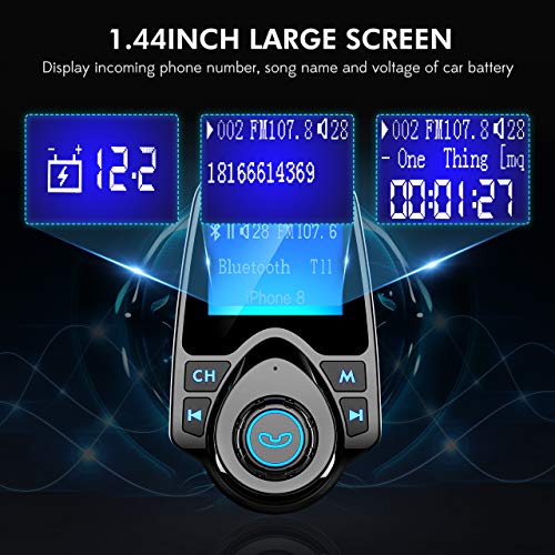 Kapatmak için bir Düğme ve 1.44 `` Zarif LED Ekran FM vericisini kapatmak için telefon görüşmesi düğmesine 3S uzun basın, pilin boşaltılması konusunda endişelenmenize gerek yok. Mavi aydınlatmalı 1,44 inç geniş ekran, gelen aramaları, şarkı adlarını, FM frekansını, hatta aracınızın akü voltaj seviyesini açıkça görüntüleyebilir. Gece ve gündüz okumak kolaydır. - Müzik Çalma için 4 Mod Hangi cihazı kullanırsanız kullanın, Bu Müzik FM Verici arabanızda bir müzik ziyafetinin keyfini çıkarmanızı sağlar: Bluetooth fonksiyonlu cihazlar; USB flash sürücü oynatma; TF kart oyunu; 3,5 mm ses kablosu ile AUX çalma3,5 mm kablo dahildir - 2 USB Bağlantı Noktası ve Ayarlanabilir Boyun Çift USB bağlantı noktaları şarj ederken müzik dinlemenizi sağlar. Hızlı ve etkili şarj deneyimi sağlayan 5V / 2.1A hızlı şarj çıkışı. Esnek boyun rahat kullanım için mükemmel görüş açısına ayarlanabilir, arabanızda daha sportif ve kompakt bir dokunuş isteyenler için mükemmel bir gooseneck yok. - HD Ses Kalitesi ve Bellek İşlevi
