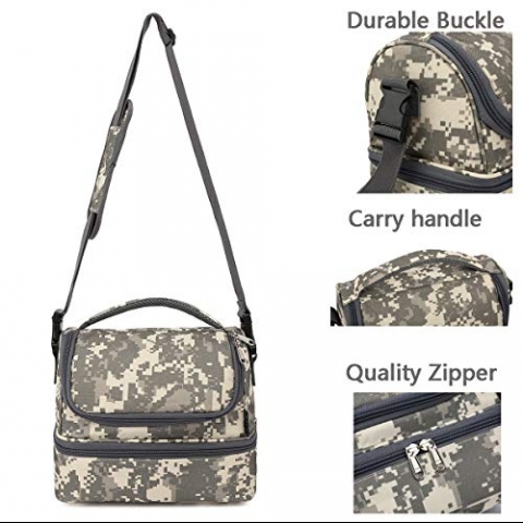 Malzeme: Bu ergonomik olarak tasarlanmış yemek hazırlama torbası, son derece dayanıklı 600D Polyester, toksik olmayan FDA uyumlu gıda güvenli PEVA astar, PE köpük yalıtımı ve güçlü sağlam SBS fermuarlarından yapılmıştır. Malzeme yüksek kalite ve rip dayanıklı. Bizim büyük soğutucu tote olabilir buzdolabında buz paketleri koymak zaman yiyecek depolama 9 saatten fazla tutmak. Suya dayanıklı ve ağırdır. - Çift Katmanlı Büyük Boy :: Sert konteynerin boyutu: 9.8L5.9W7.5H., Ancak çok hantal değil.Bu iki çift katlı bölüm soğuk veya sıcak yiyecekleri ayırabilir.Üst Soğutucu Bölmesi meyve, cips, atıştırmalıklar, içecekler, alt Dikdörtgen Bölme, favori yemeklerinizi, şarküteri ve öğle yemeğinizi tutmanız için geniş depolama alanı verebilir, geniş bölmeleri öğle yemeği kutularınız, sandviç, gıda kapları, çeşniler, meyve salatası kaseleri, diğer ofis öğle yemeği ile doldurabilirsiniz. gıda ve benzeri - Fonksiyon: Bu yumuşak lüks Öğle kovası f ile iç astar olarak eşyalarınızı saatlerce soğuk veya sıcak tutabilir