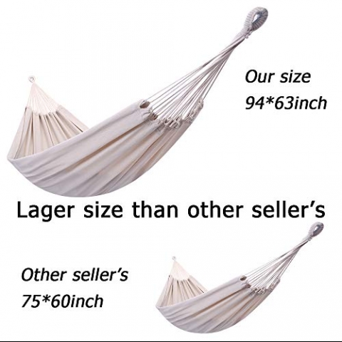 Yükseltilmiş Boyut: Daha geniş, toplam boyutta 142 * 63 inç ve yatak boyutunda 94 * 63 inç. Müşterilerin seslerini dinliyoruz ve hamakları daha rahat hale getirmek için daha uzun ve daha geniş hale getirmek için çaba gösteriyoruz. - Statik kapasite: 450 liraya kadar güvenle tutabilir. - Dayanıklılık: Yumuşak pamuklu ve iyi yapılmış kalın polyester kumaşla sağlam yapı. - Grap-and-GO: Hamak, kolay taşıma ve kolay seyahat için bir saklama çantası ile birlikte gelir. - Bu hafif hamakla parkta, arka bahçenizde rahatlayın ve daha fazlasını yapın.